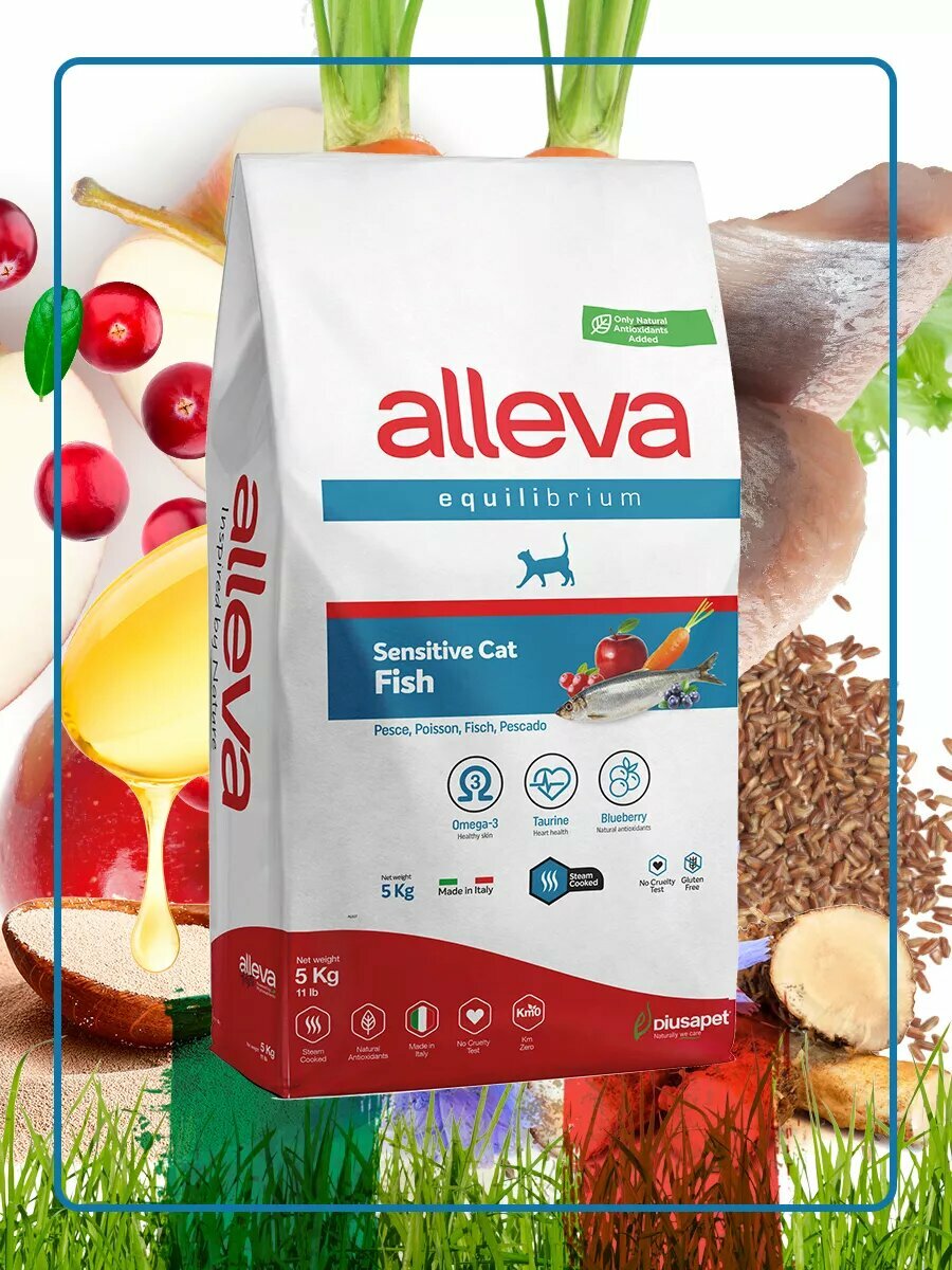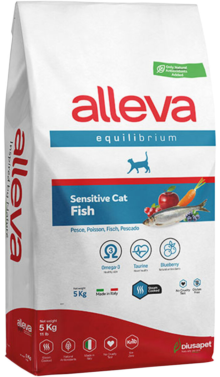 Корм Аллева Эквилибриум Сенситив для взрослых кошек, с рыбой, ALLEVA EQUILIBRIUM SENSITIVE FISH ADULT CAT, 5 кг