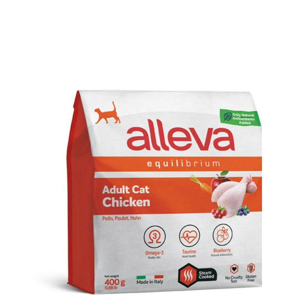 ALLEVA EQUILIBRIUM CAT для кошек Adult Chicken / взрослых с курицей 0,4 кг 1035 новинка, (2 шт)