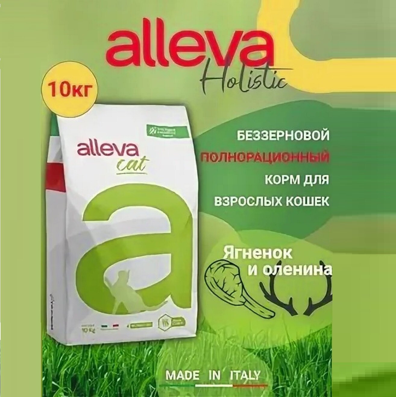 ALLEVA HOLISTIC Корм сухой для взрослых кошек с ягненком и олениной 10 кг