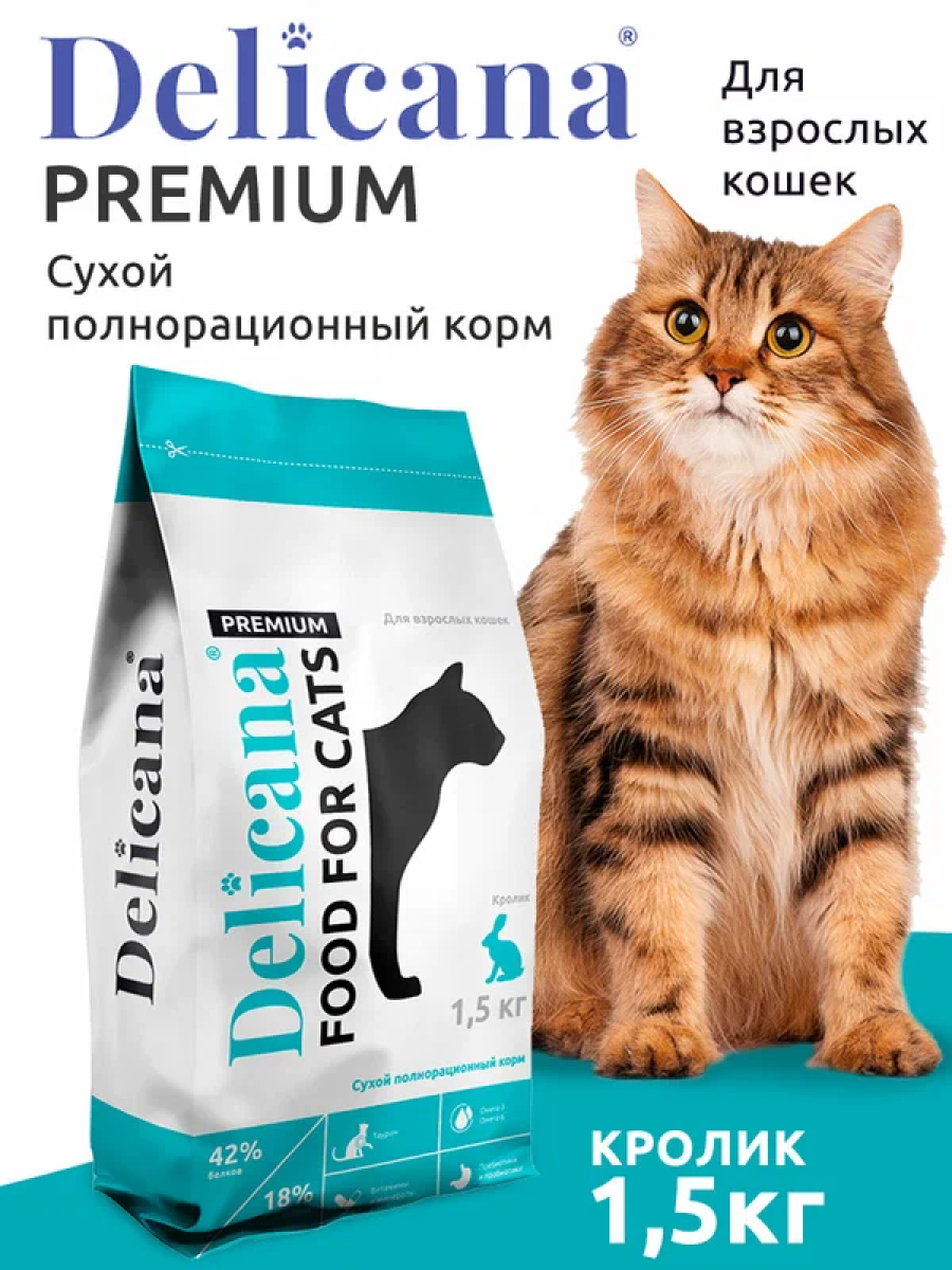Купить Корм сухой Delicana для кошек Кролик 1,5 кг