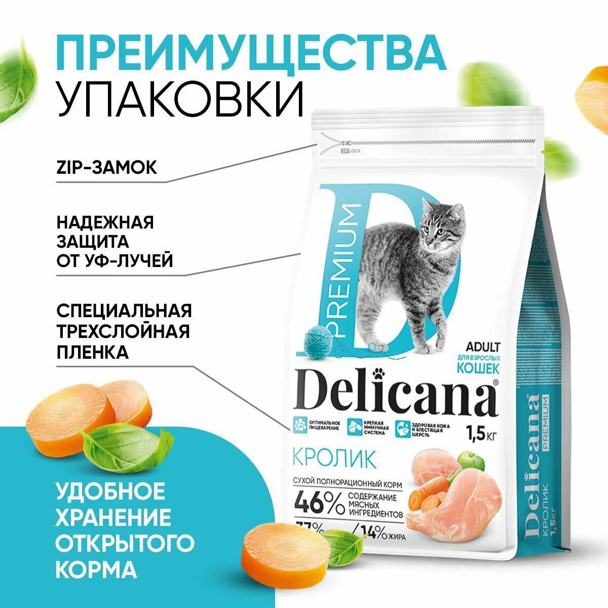 DELICANA сухой корм для кошек, кролик 1,5кг.
