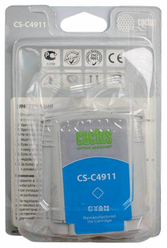 Картридж струйный CACTUS (CS-C4911) для плоттеров HP DesignJet 500/510/800, голубой - 1 шт.