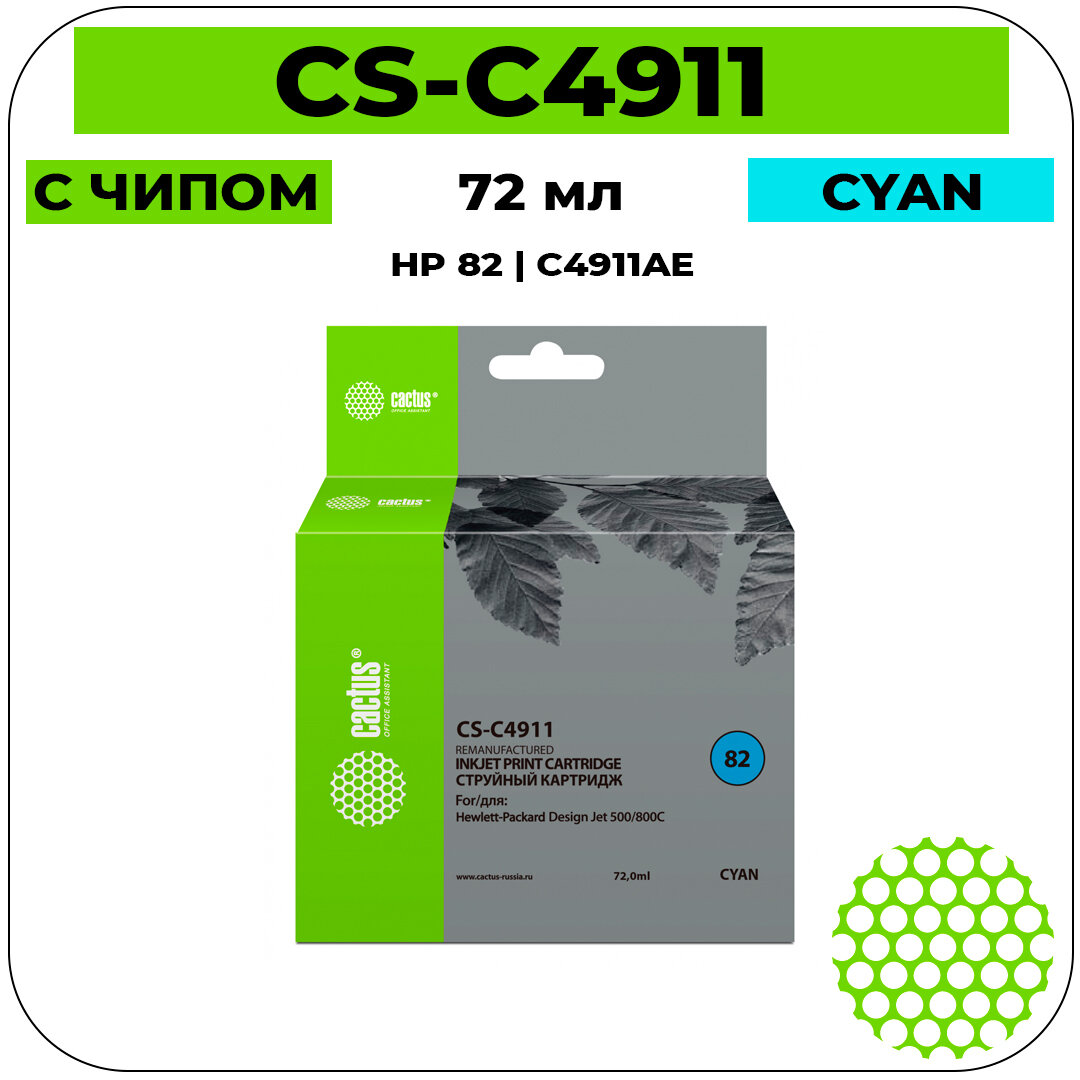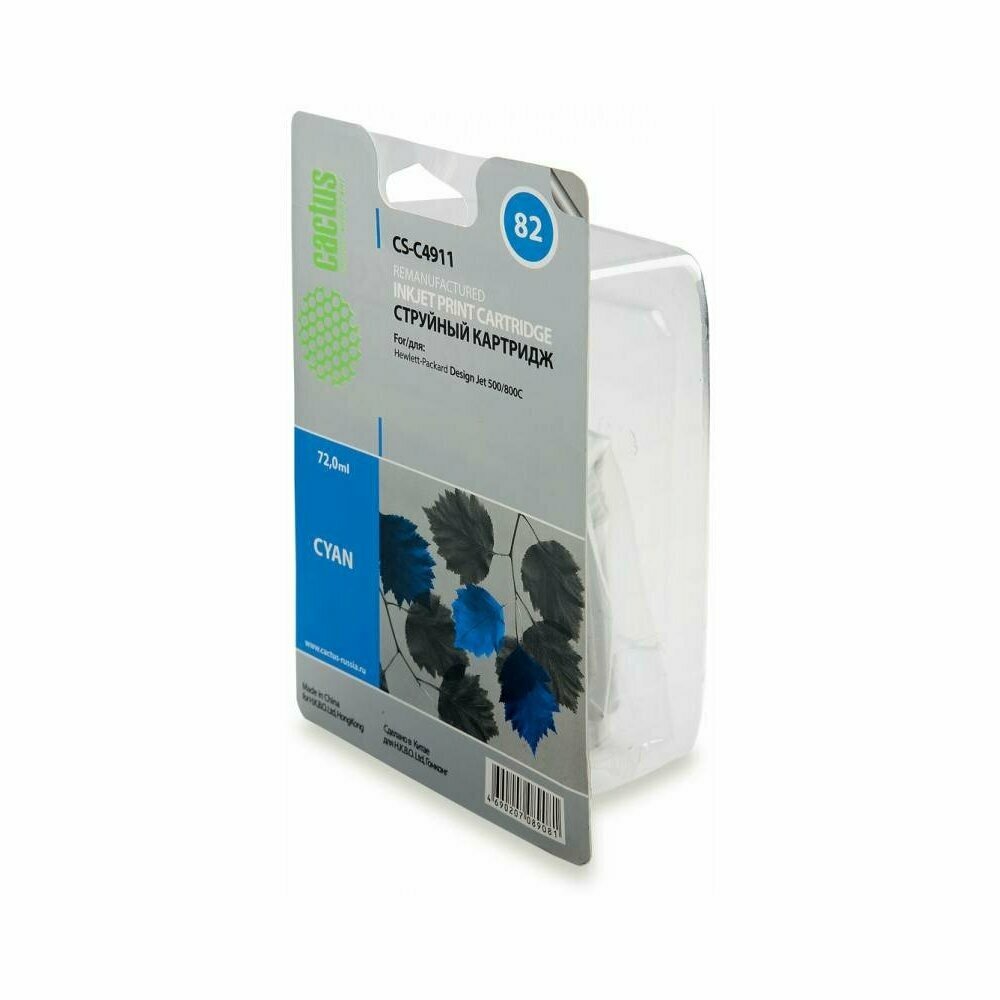 Картридж CACTUS CS-C4911, №82, голубой / CS-C4911