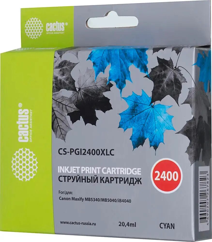 Cartridge ink Cactus CS-PGI2400XLC cyan (20.4ml) for Canon MAXIFY iB4040/ МВ5040/ МВ5340