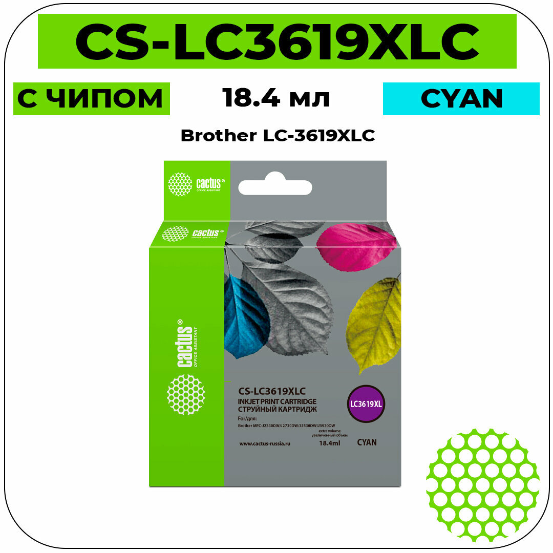 Картридж струйный Cactus CS-LC3619XLC голубой (18.4мл) для Brother MFC-J2330DW/J2730DW/J3530DW/J3930DW