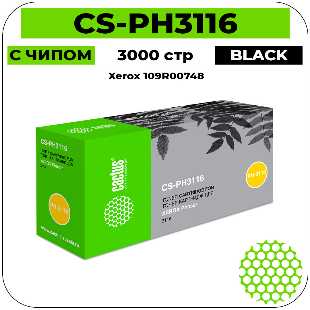 109R00748 / CS-PH3116 Cactus совместимый черный картридж для Xerox Phaser 3116 (3 000 стр.)