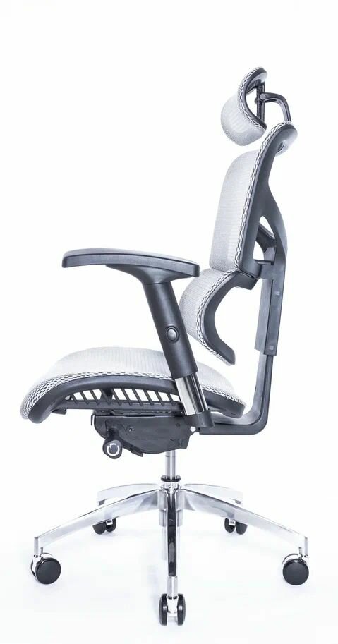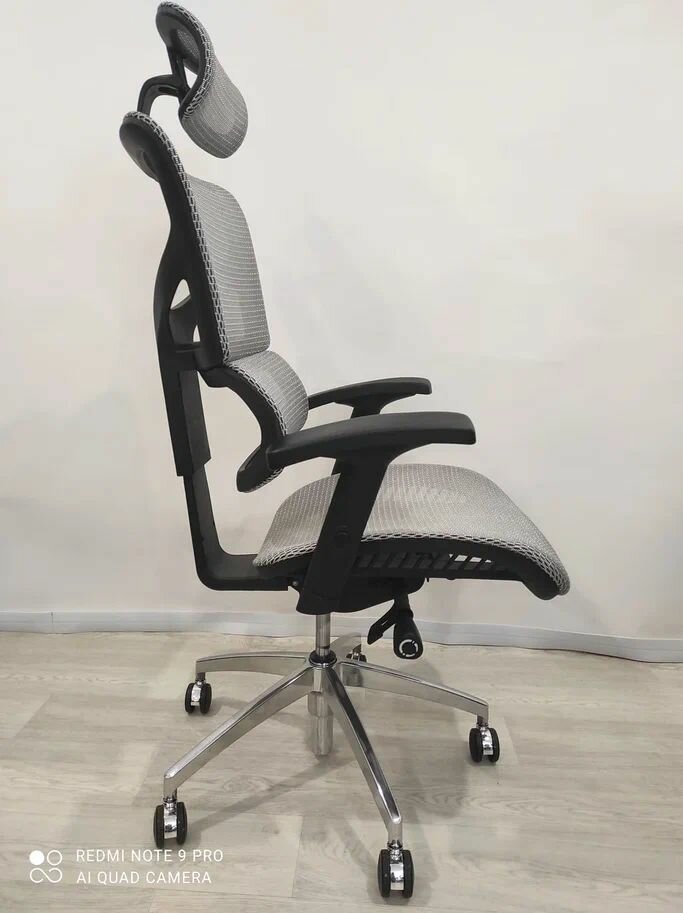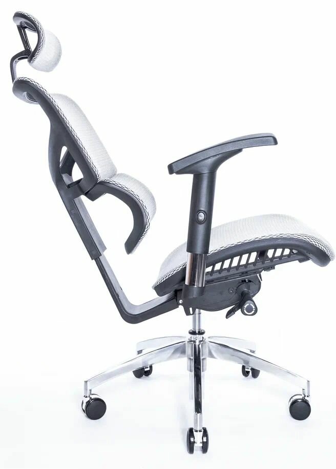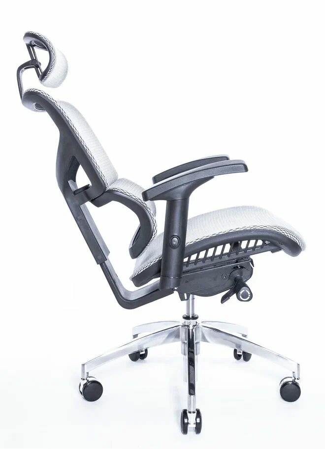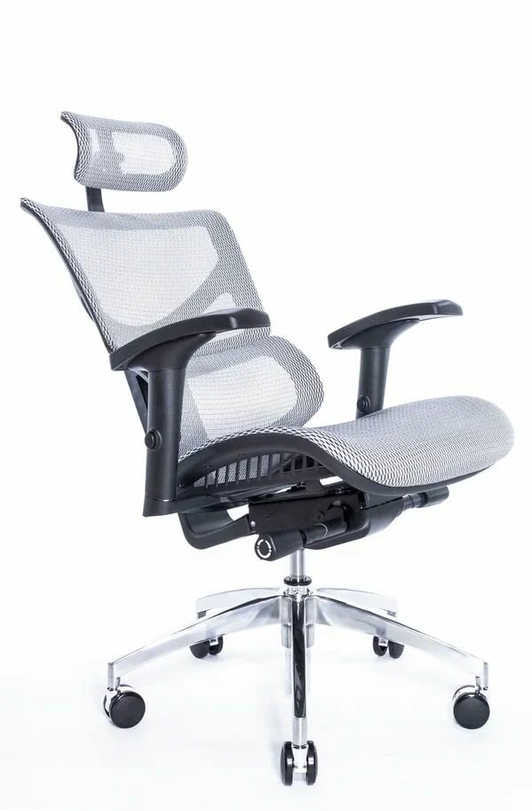 Эргономичное кресло Falto Expert 2 STAR с подножкой, сетка серая / каркас белая скала хром