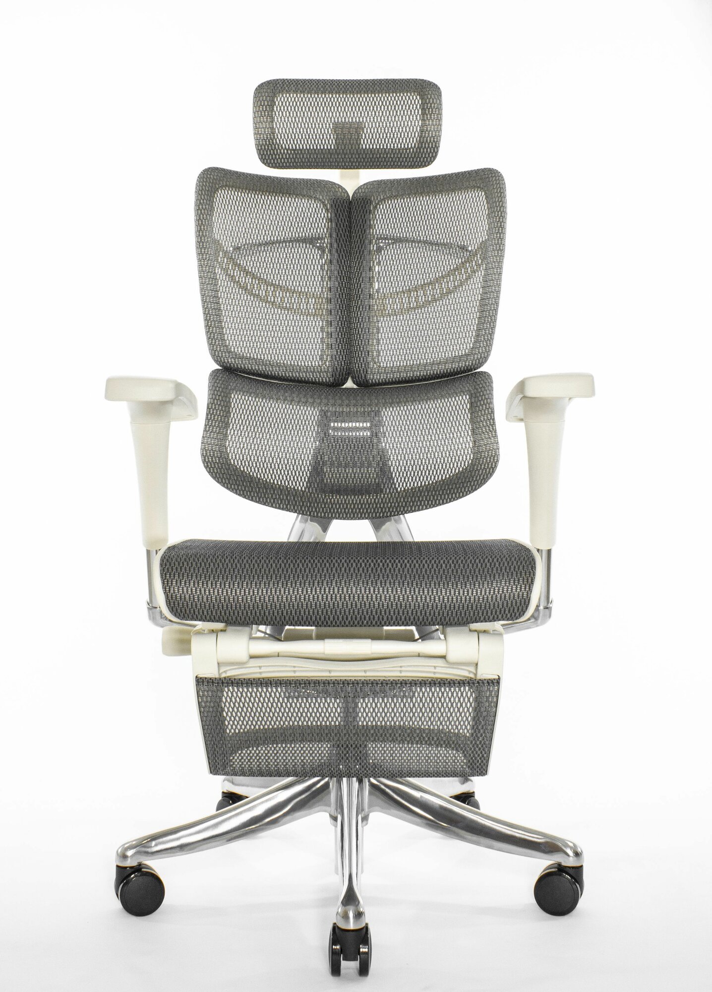 Эргономичное кресло Falto Expert 2 STAR с подножкой, сетка серая / каркас белая скала хром