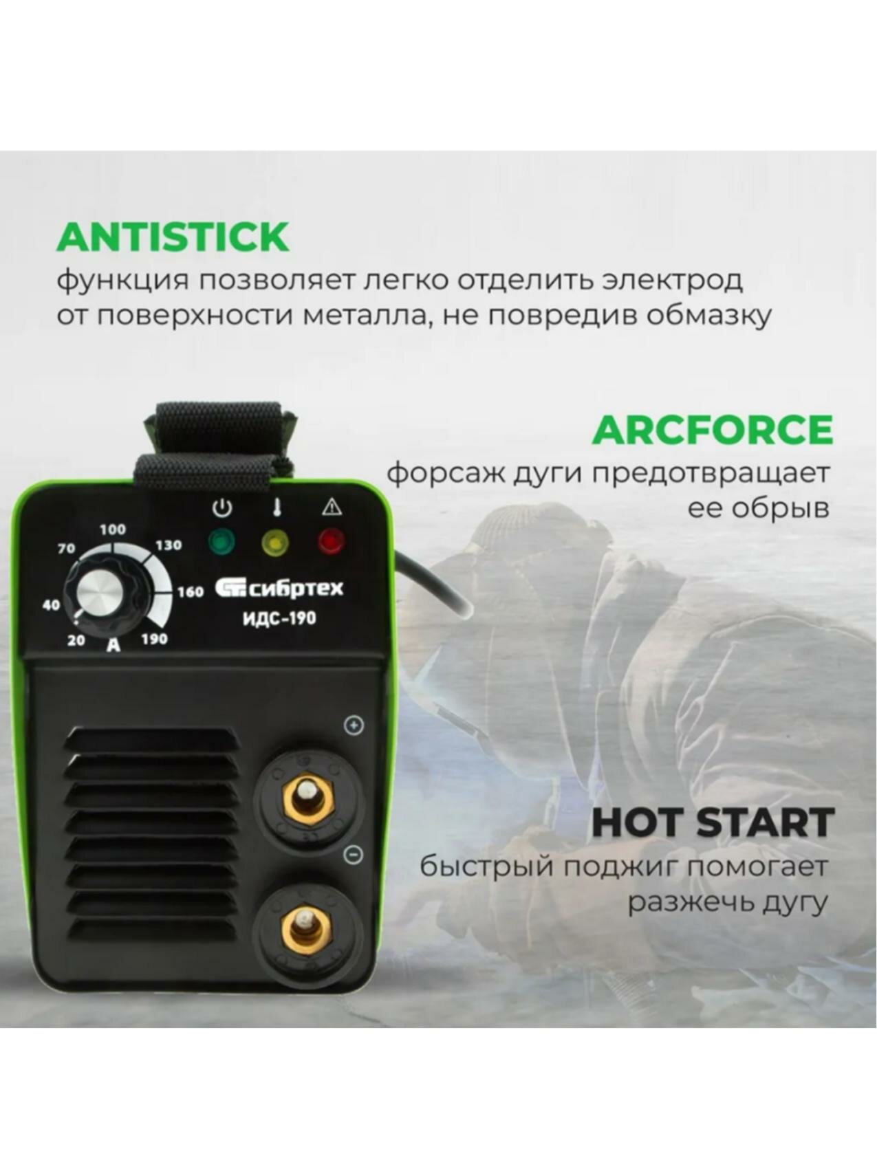 Сварочный аппарат инверторный Сибртех ИДС-190K , 190 А, ПВ 80%, диам. эл. 1, 6-4 мм 94394