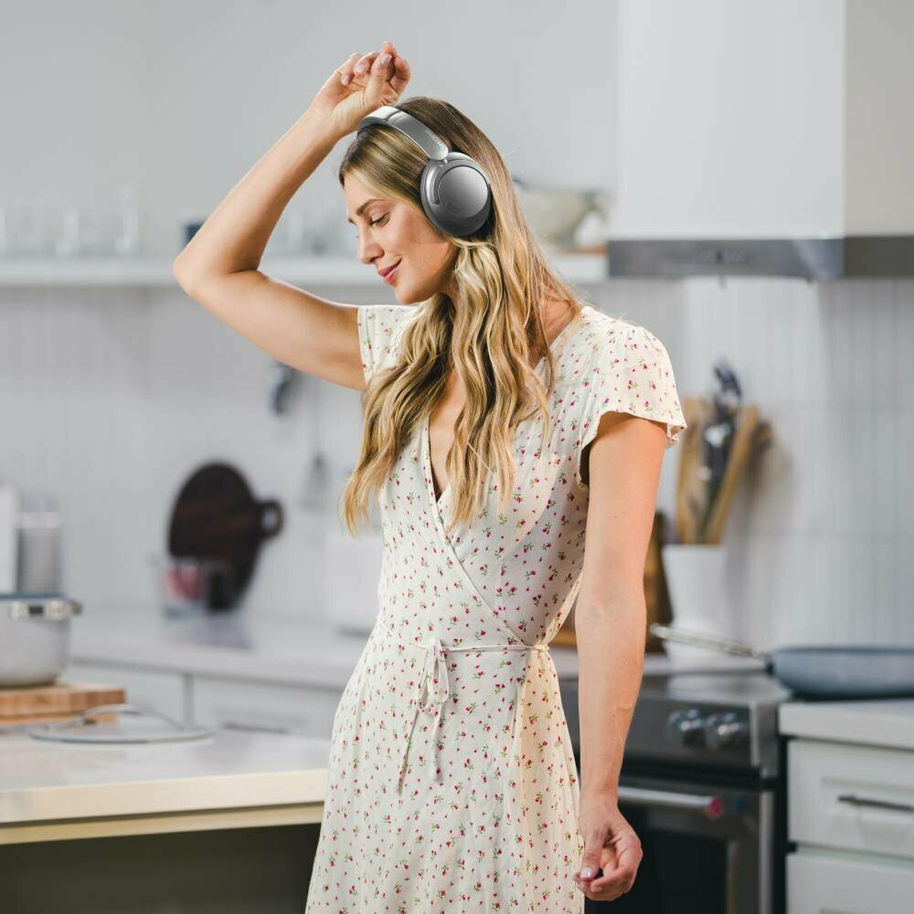 1MORE SonoFlow Active Noise Alberting наушники, Bluetooth наушники с LDAC для Hi-Res Wireless Audio, 70H Playtime, четкие звонки, предустановленный EQ через приложение, Silver