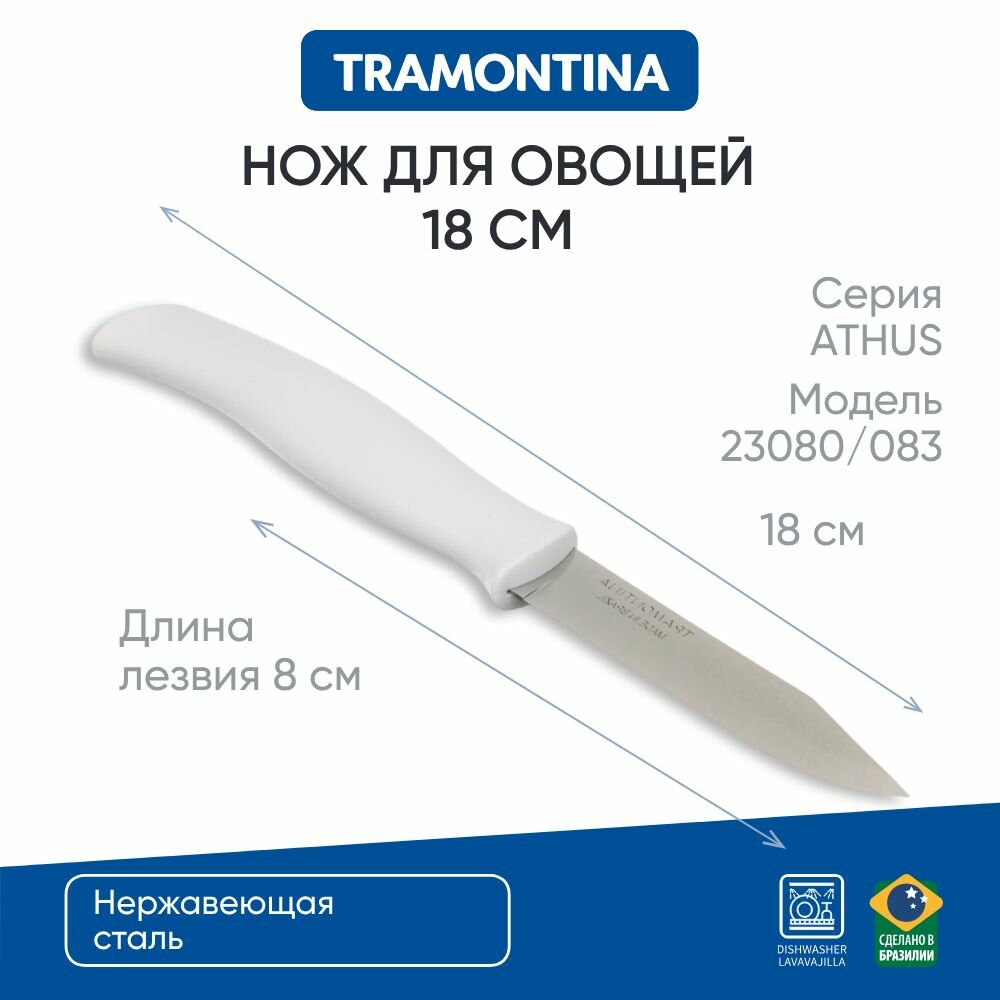 Купить Нож кухонный овощной 8 см Tramontina Athus, маленький нож для чистки овощей, фруктов, белая ручка