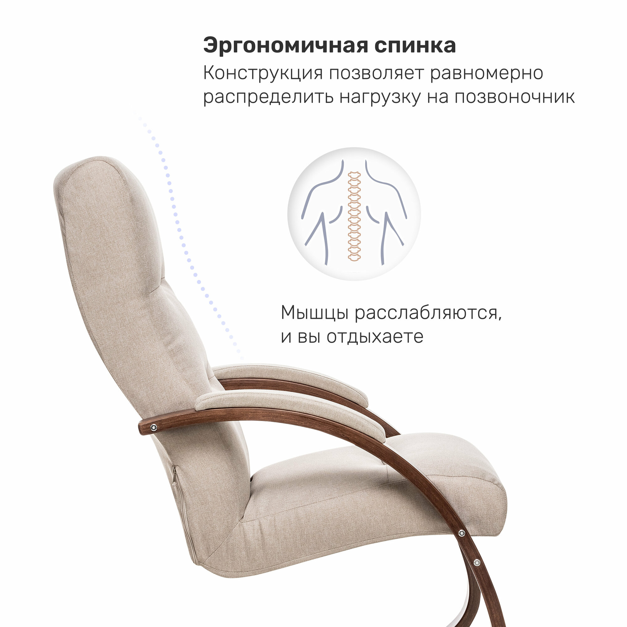 Кресло-качалка Leset Милано, орех текстура, ткань велюр, v18 бежевый