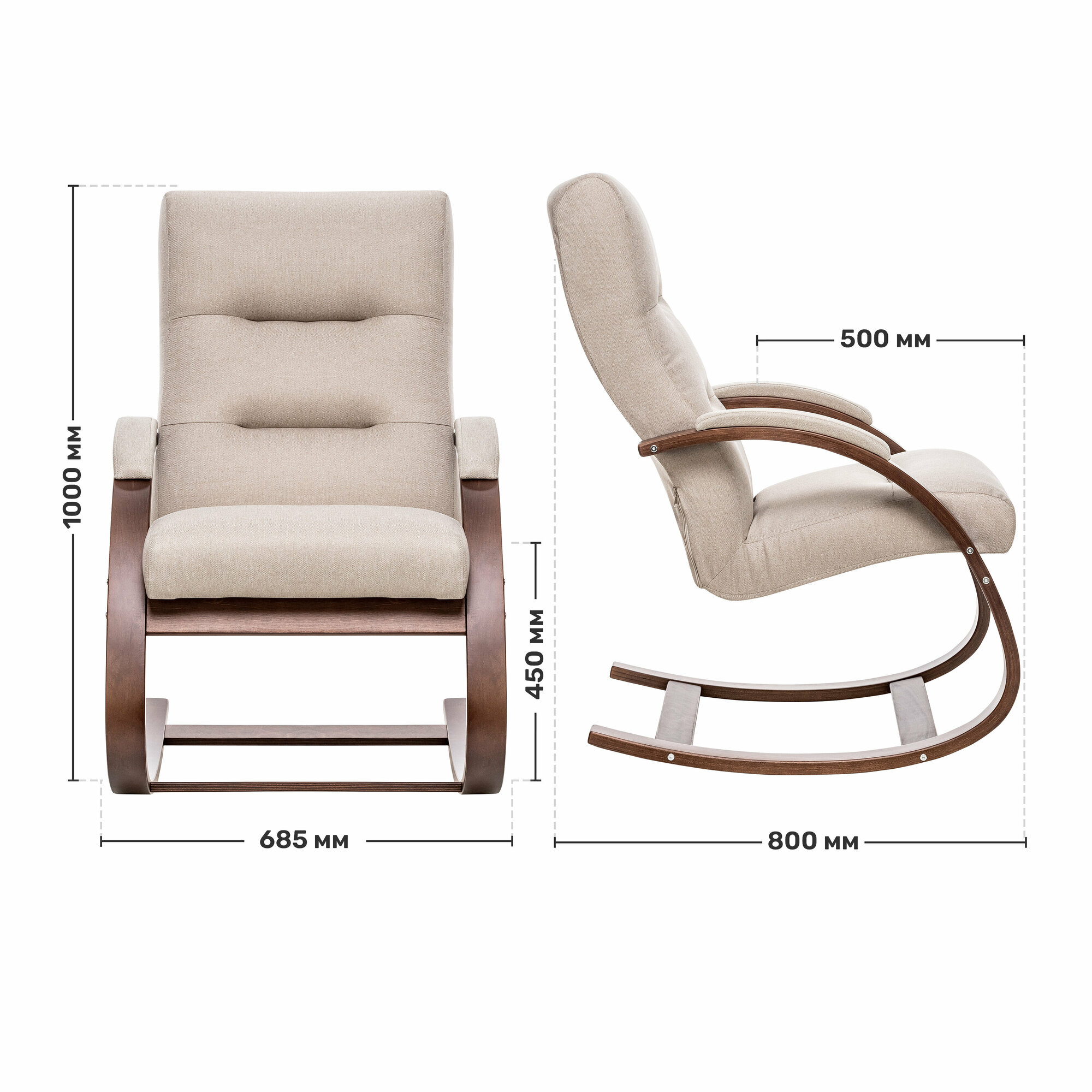 Кресло-качалка Leset Милано, Венге, ткань рогожка Малмо 05 бежевая