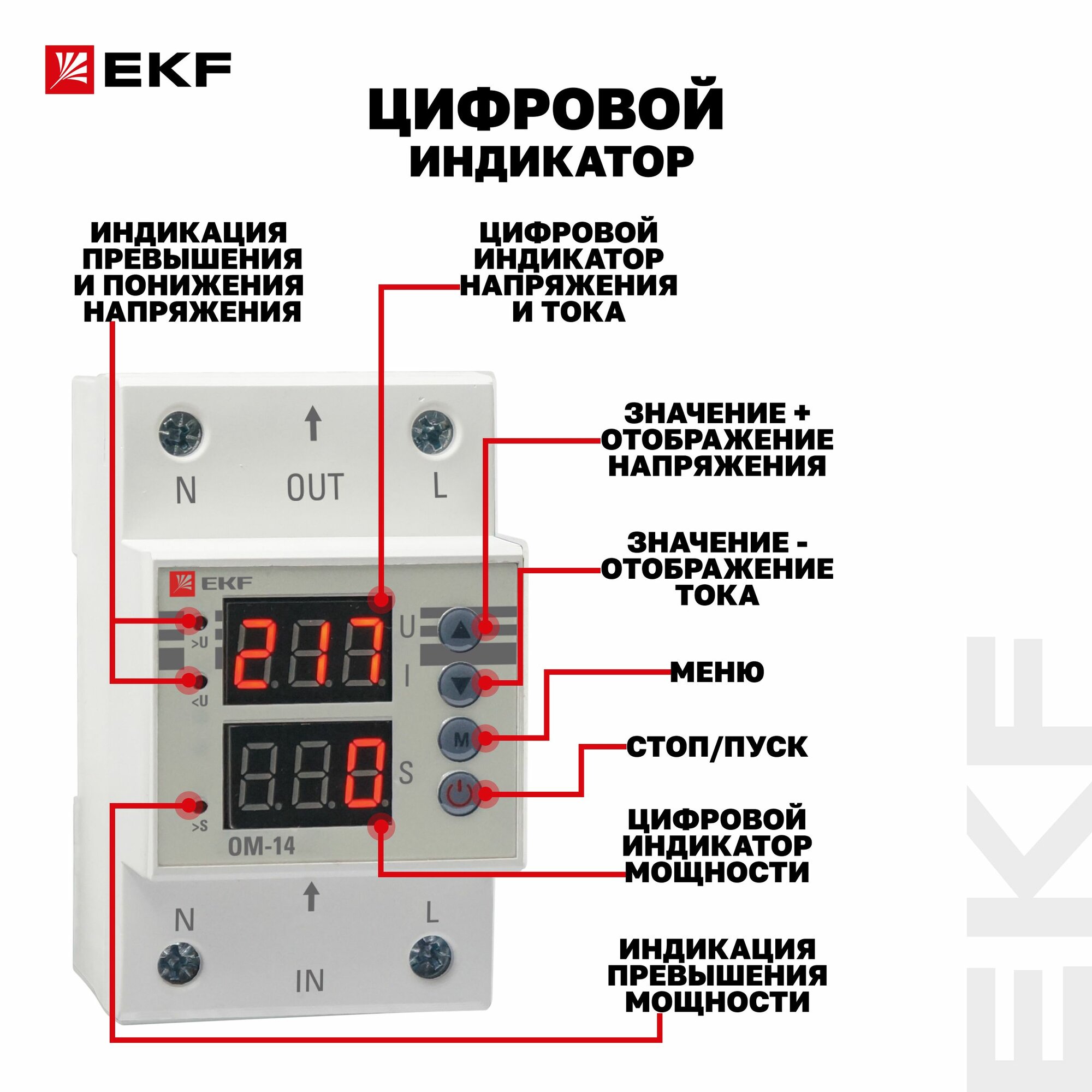 Реле контроля мощности EKF ОМ-14 300 В