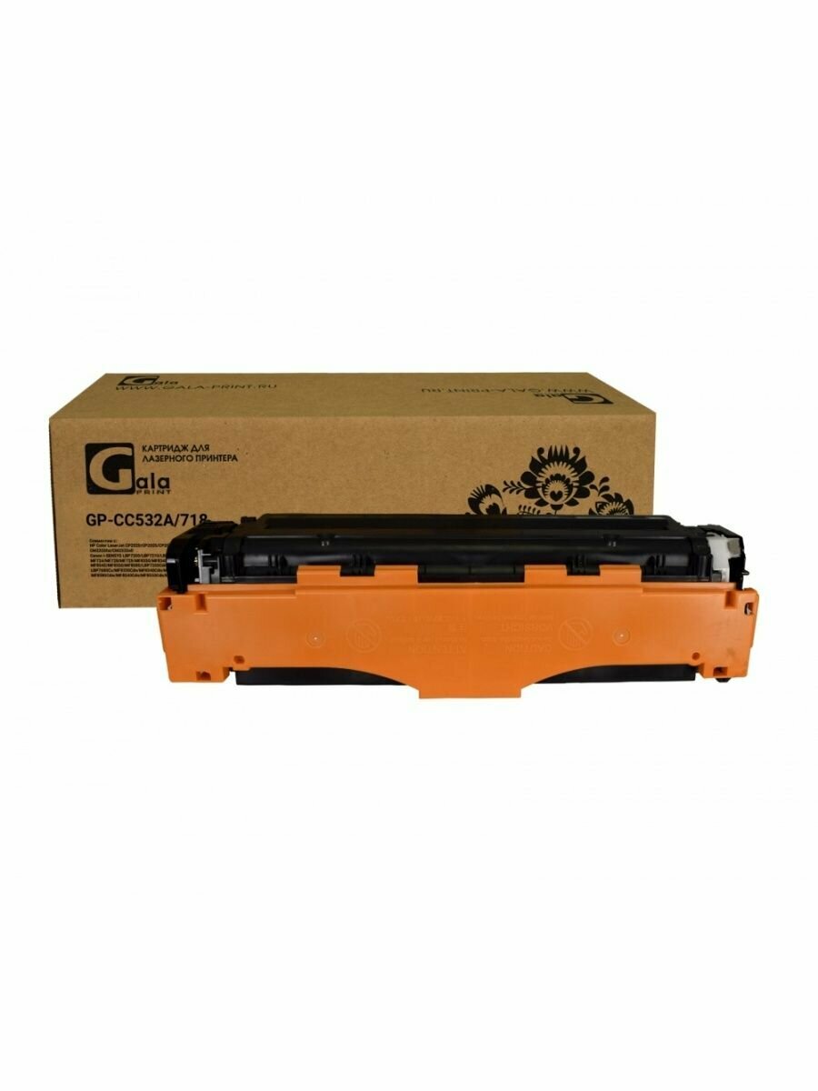 Картридж GalaPrint CC532A/718 (№304A) для принтеров HP Color LaserJet CP2020/CP2025/CP2025dn/CP2025n/CM2320/CM2320fxi/CM2320nf/Canon i-SENSYS LBP7200/LBP7210/LBP7310/LBP7660/LBP7680/MF724/MF728/MF729/MF8330/MF8340/MF8350/MF8360/MF8380/MF8540/MF8550/MF8580