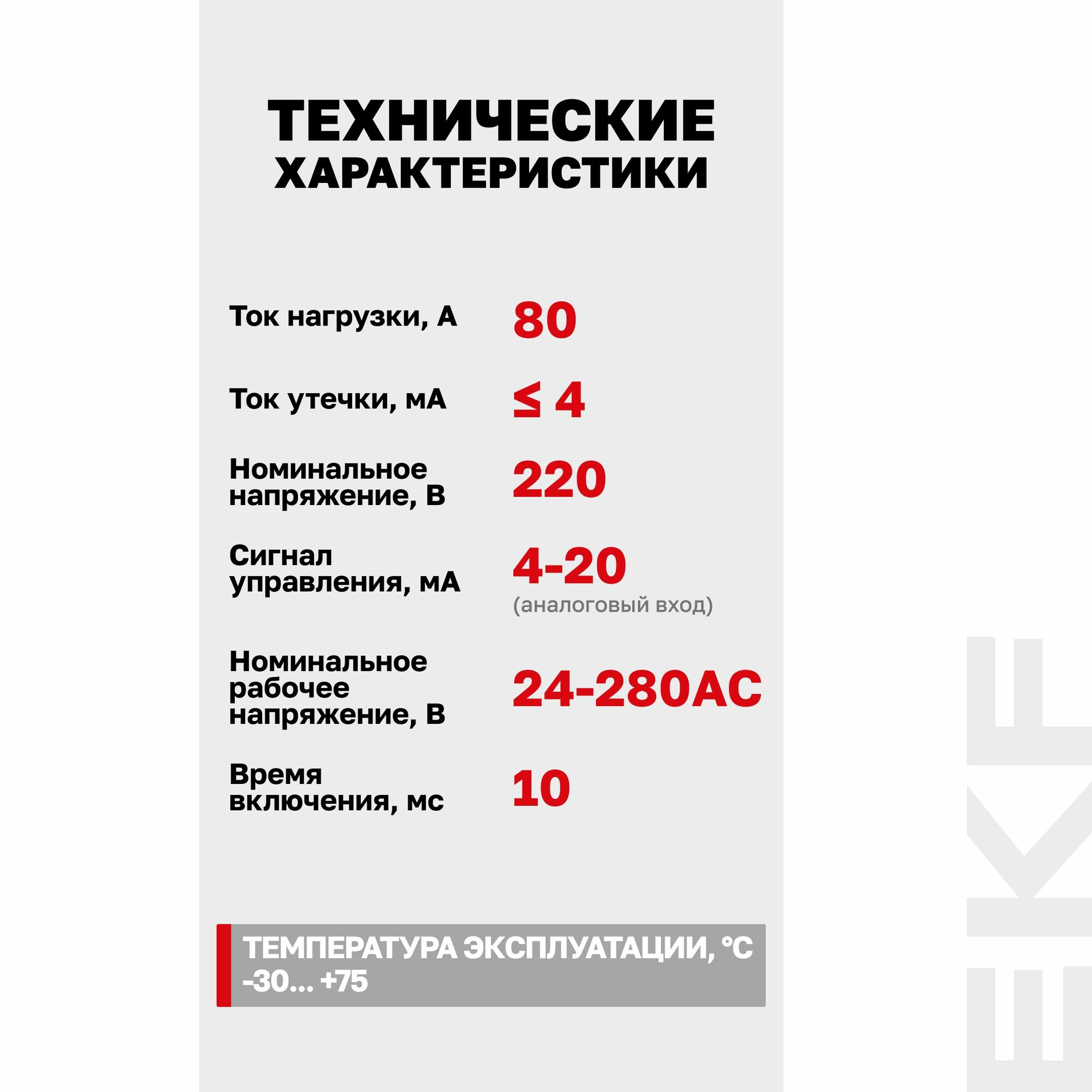 | Номинальный коммутируемый ток | 80 А |