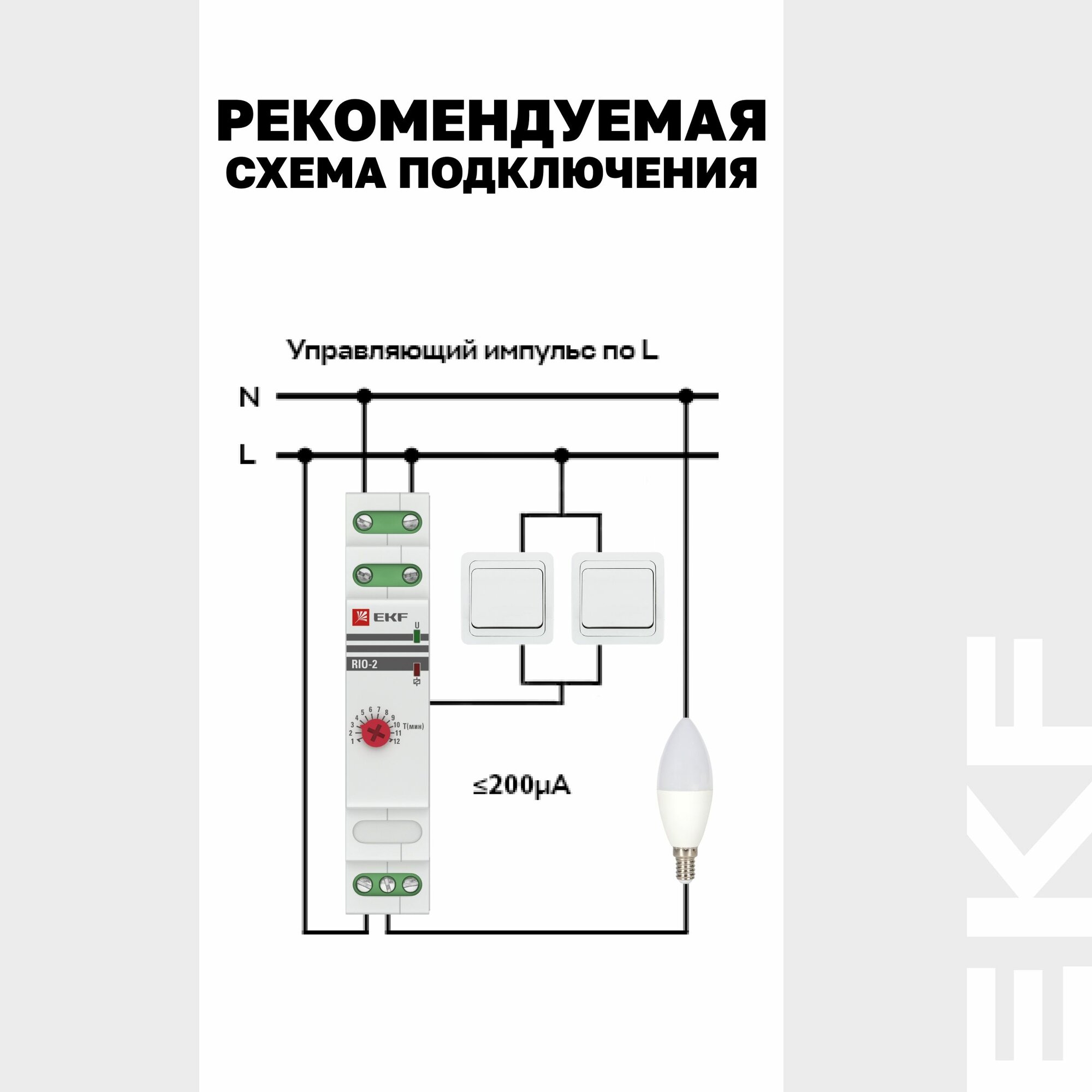 СохранитьИмпульсное реле с задержкой отключения 1-12 мин. RIO-2 EKF PROxima 10А - управление по двухпроводной сети электроприборами из нескольких мест при помощи параллельно соединенных кнопочных выключателей интересное: