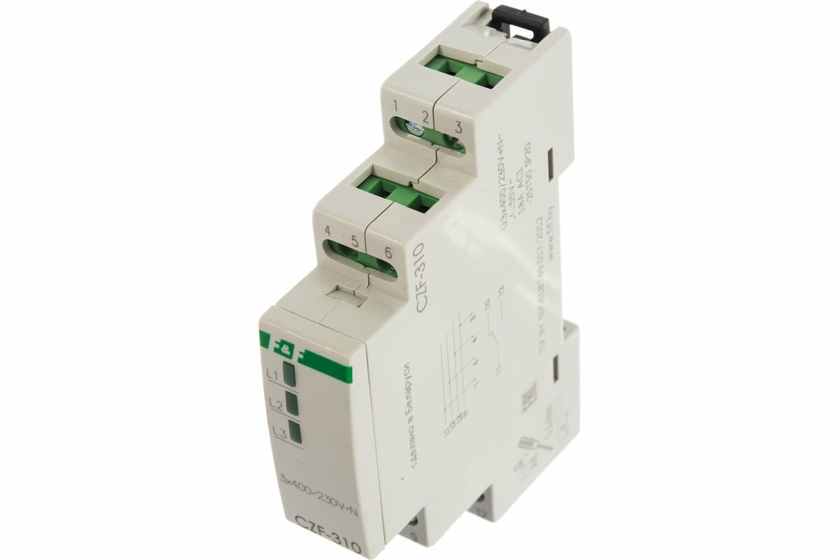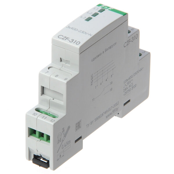 Реле контроля фаз CZF-310 (1 модуль; монтаж на DIN-рейке; 3х400/230+N 8А 1NO/NC Ip20) F&F EA04.001.0