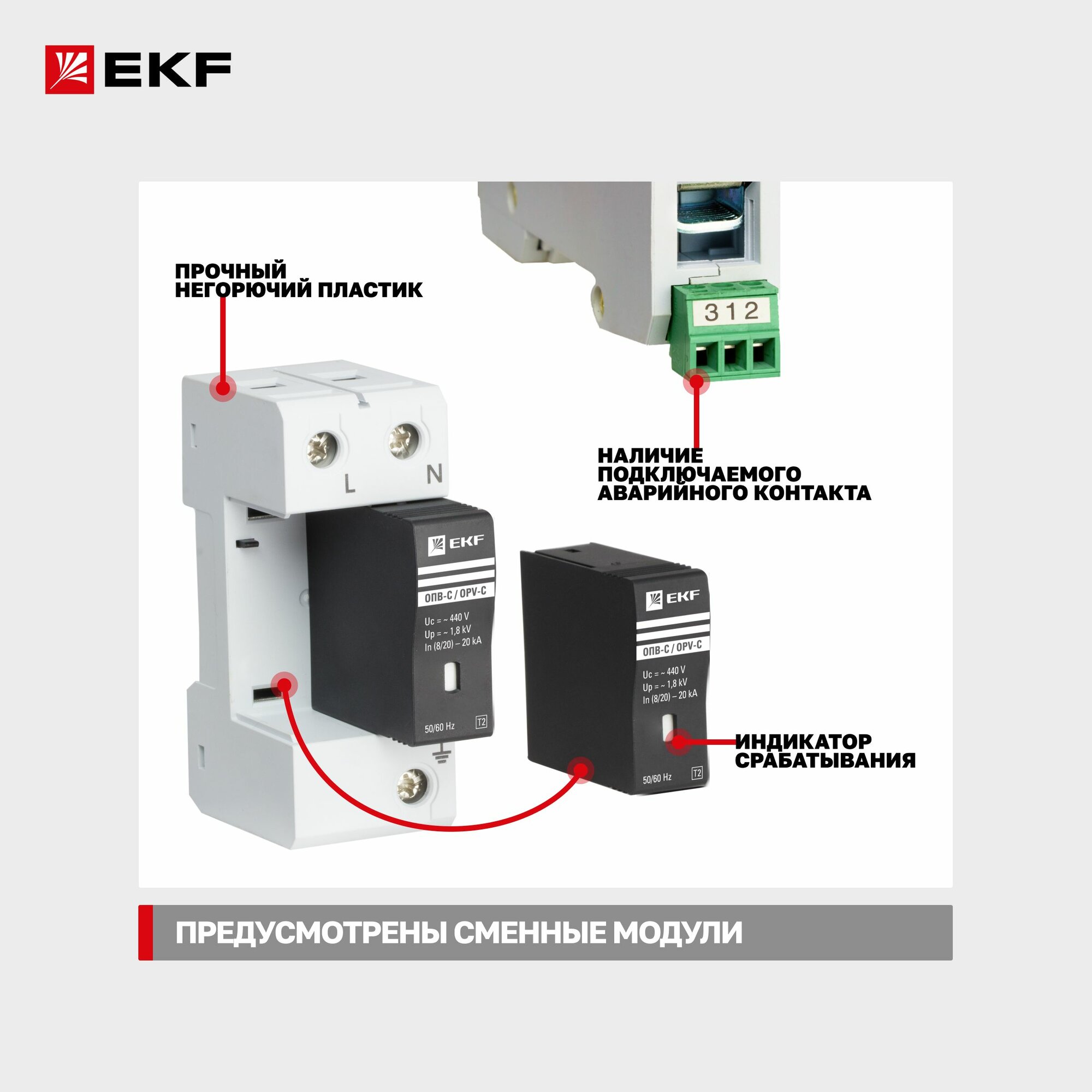 opv-c3 Ограничитель импульсных перенапряжений EKF ОПВ-C/3P In 20кА 400В с сигн.