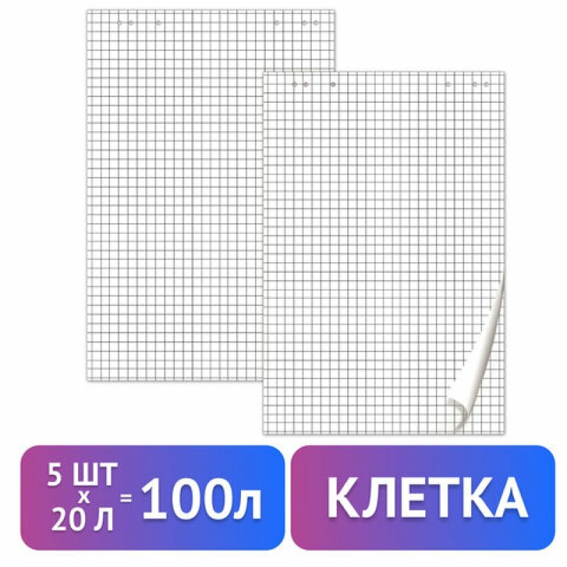 Блок бумаги для флипчарта Brauberg 67,5*98 см, 20 листов в клетку, 5 блоков в упаковке