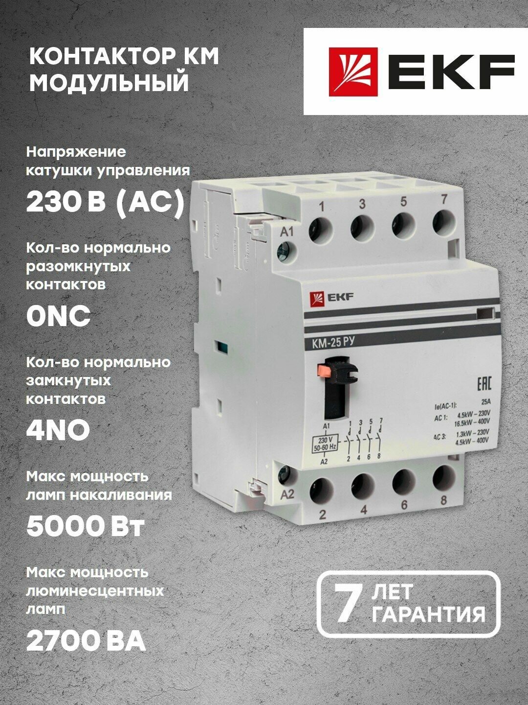 Контактор модульный КМ РУ 63А 4NO (3 мод.) EKF PROxima - 1 шт интересное: