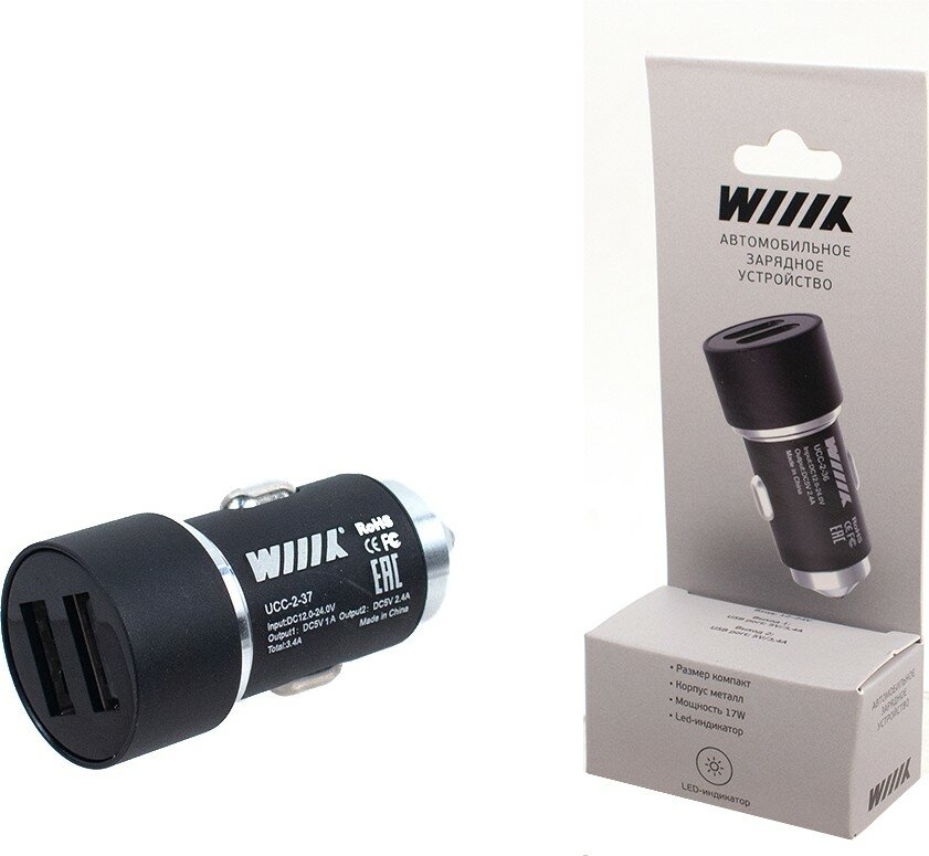 Автомобильное зарядное устройство Wiiix UCC-2-37, 2xUSB, 2.4A, черный