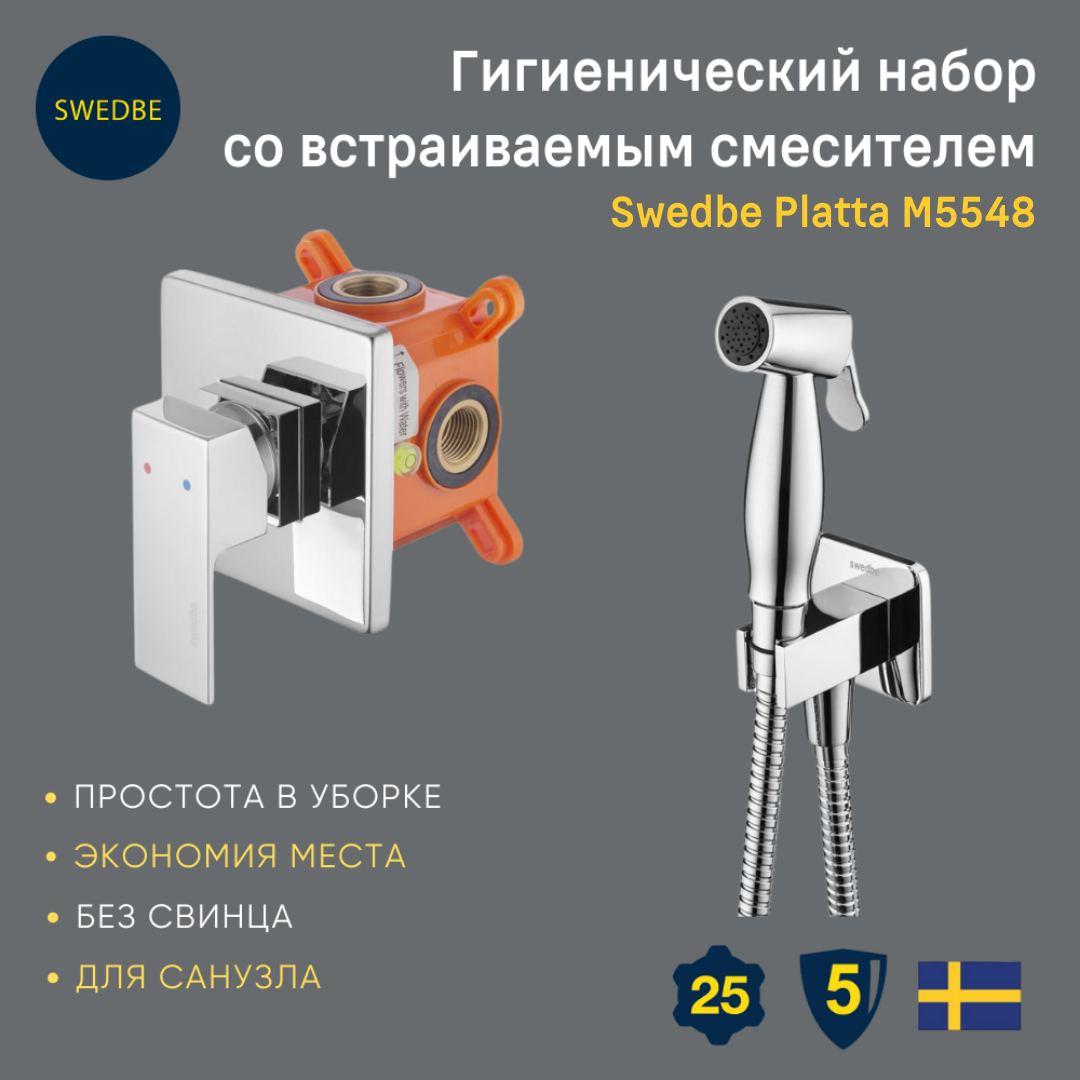 Гигиенический набор со встраиваемым смесителем Swedbe Platta 5524