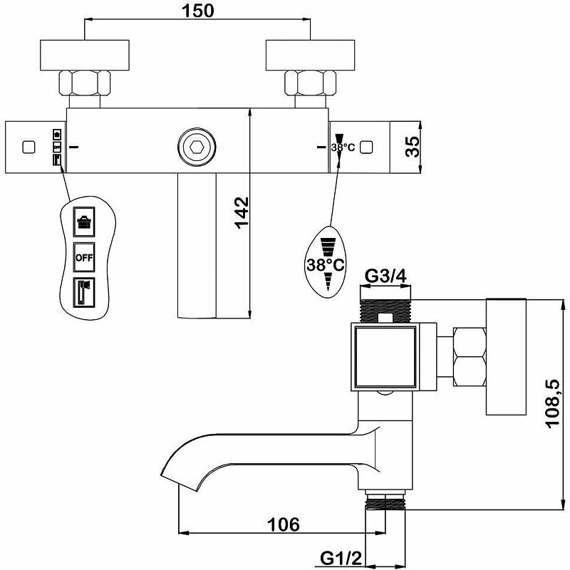 Термостат настенный для ванны и душа Swedbe Hermes с поворотным изливом 9043B
