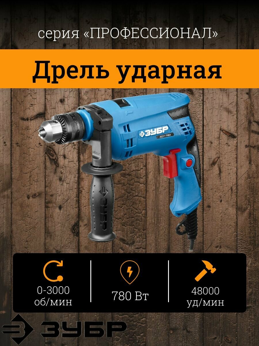 ЗУБР 780 Вт ударная дрель, серия Профессионал (ЗДУ-780 ЭРМ2)