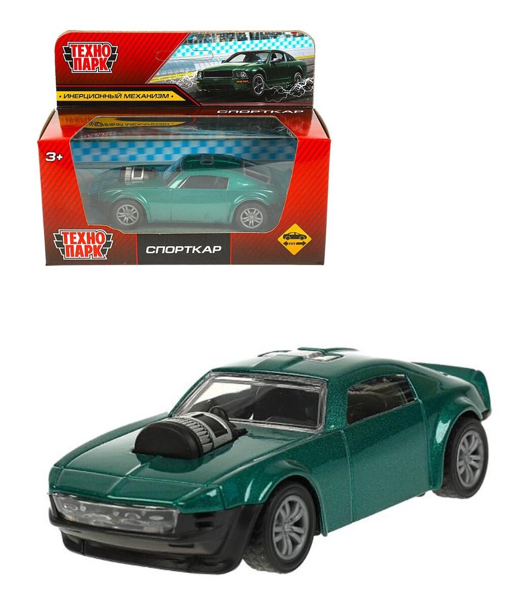 Модель машины Технопарк "Спорткар", инерционная, металл, 10,5 см, зеленая, в коробке (356991)