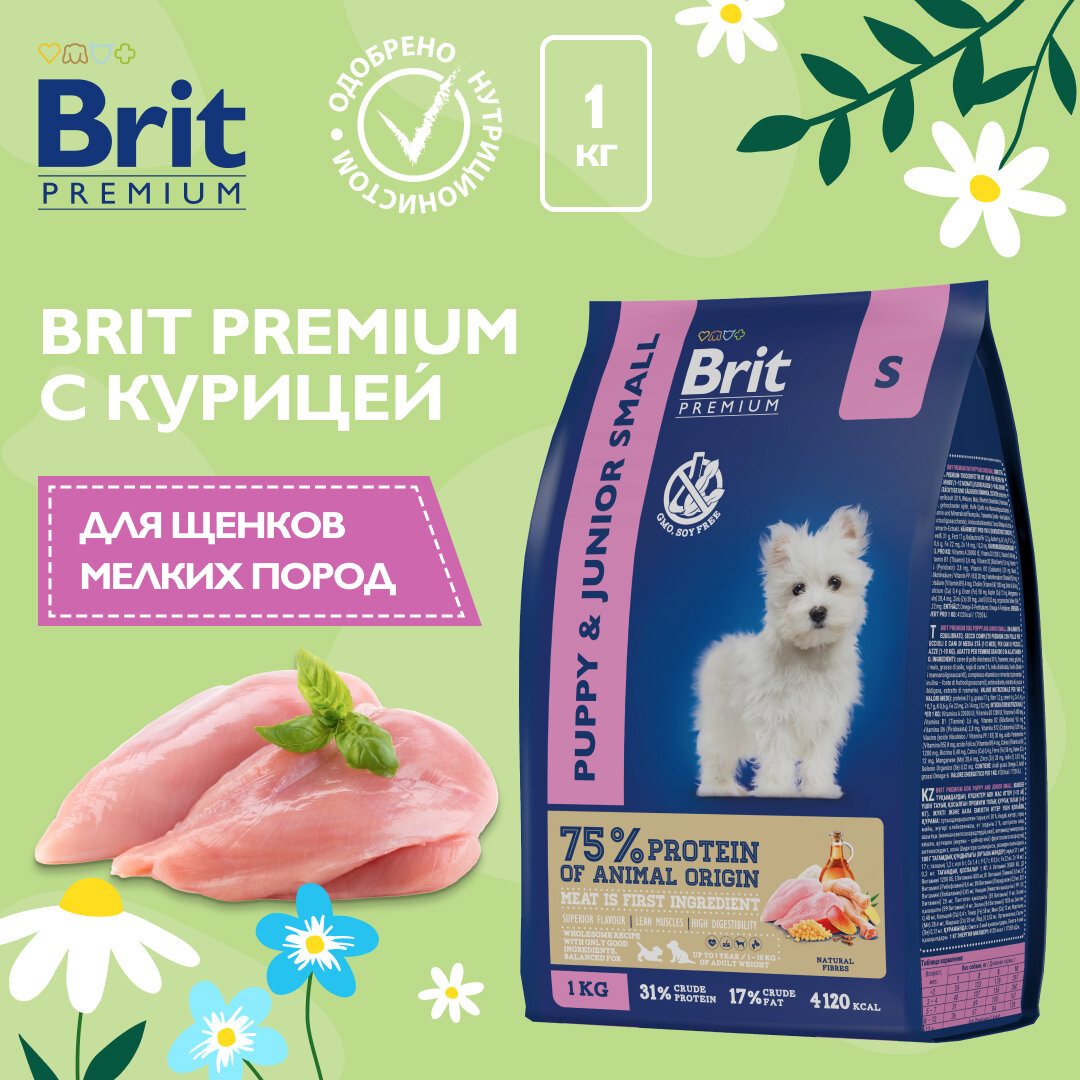 Сухой корм для щенков Brit Premium Puppy and Junior Small, курица 1 кг (для мелких и карликовых пород)