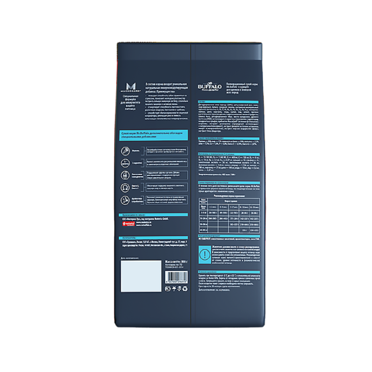 | Дополнительная информация | беречь от попадания прямых солнечных лучей и влаги; запрещается хранить на полу в сырых помещениях.; после вскрытия пакет с кормом необходимо плотно закрывать |