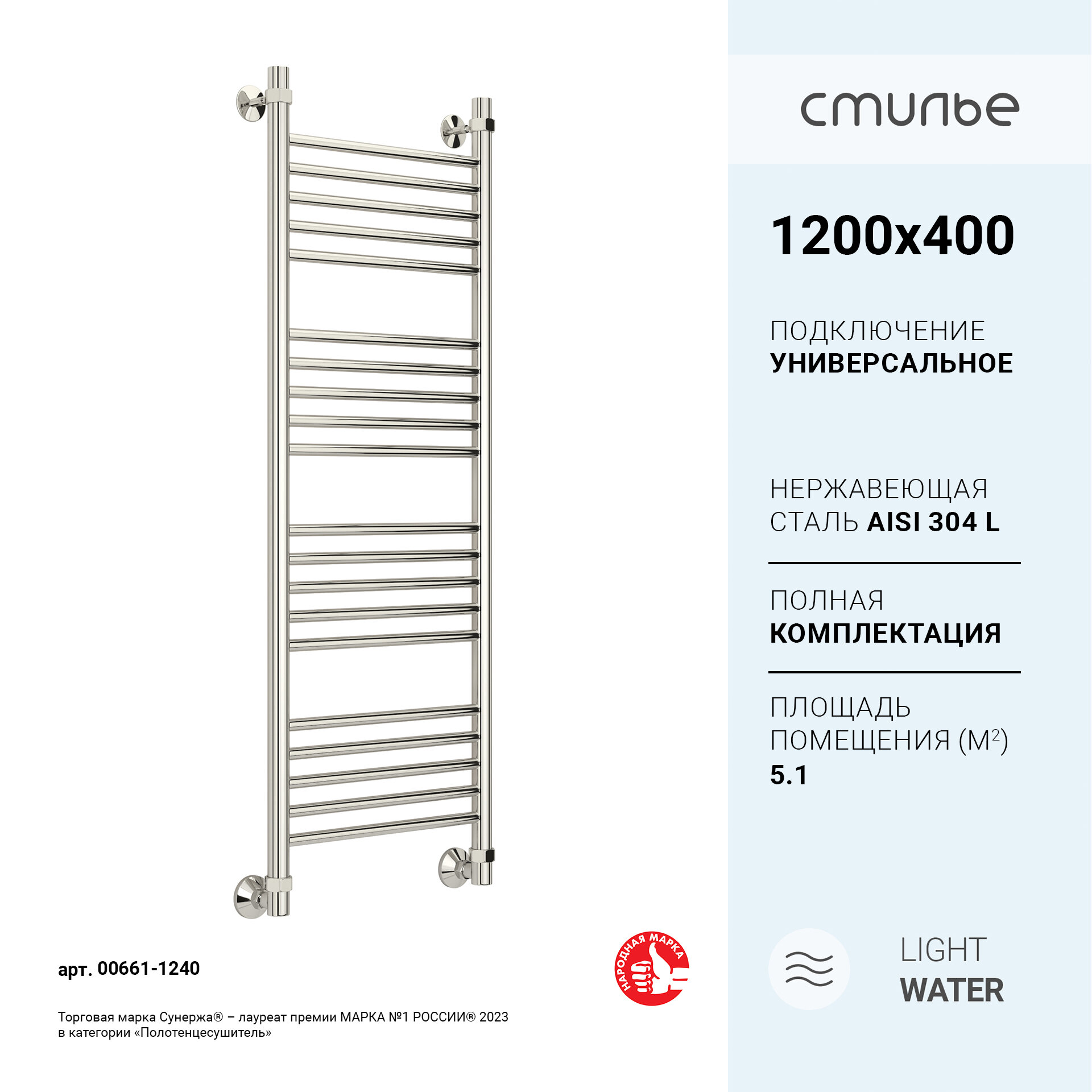 Полотенцесушитель водяной Стилье Аксиома-10, 1200x400, прямая, нержавеющая сталь 00661-1240