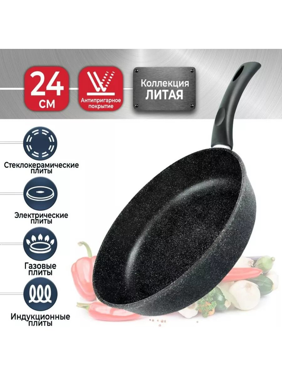 Купить Сковорода антипригарная литая 24см индукция Гранит ТМ НМП