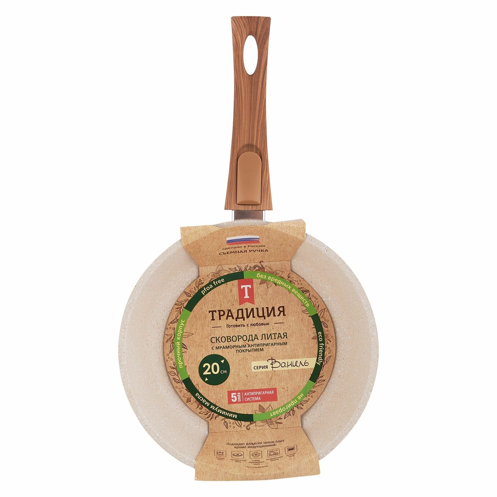 Купить Сковорода Традиция Ваниль антипригарная, со съемной ручкой, 20 см