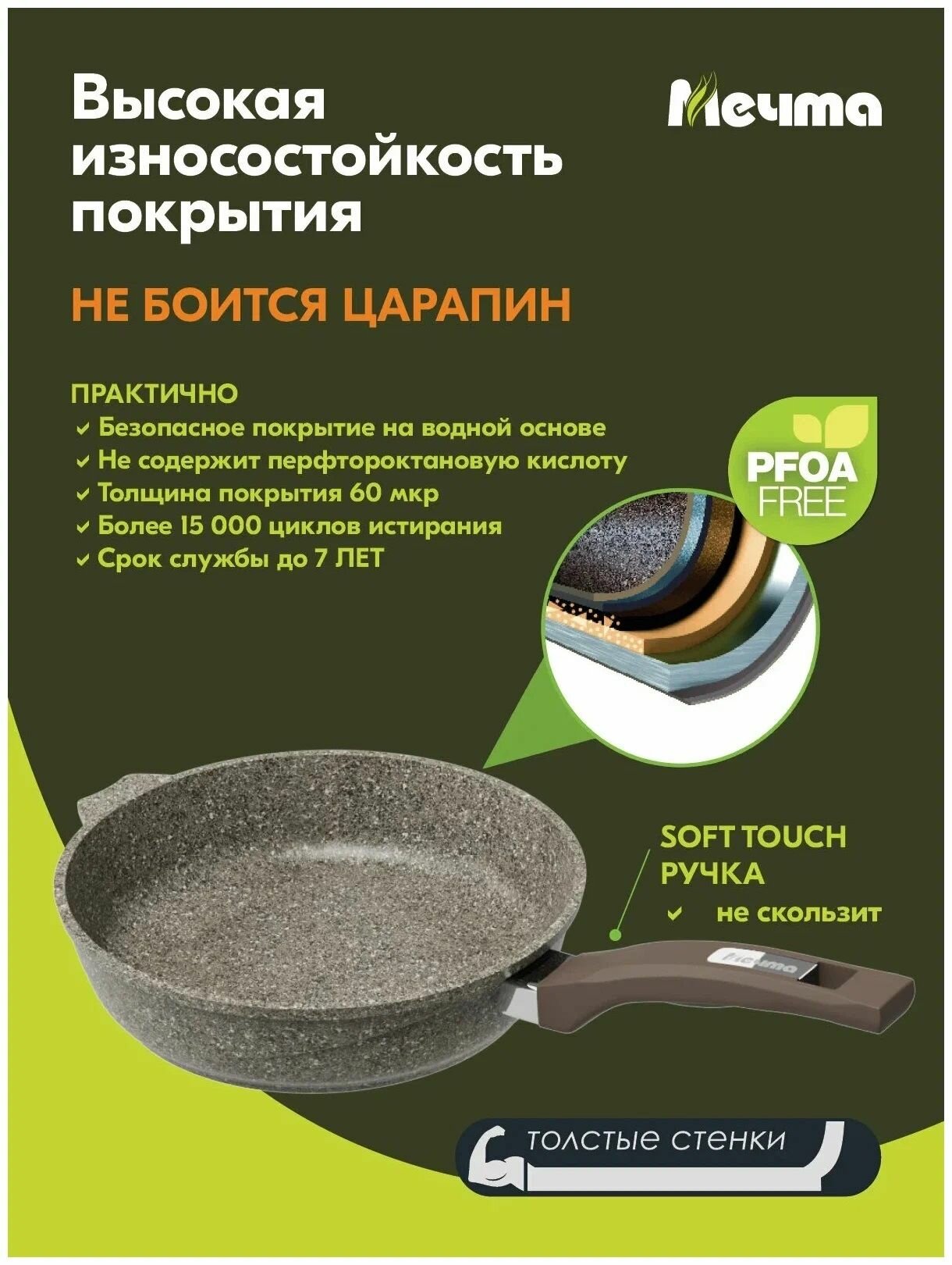 Сковорода Мечта Посуда мечта "Premium" (grey) несъемная ручка, 26 см