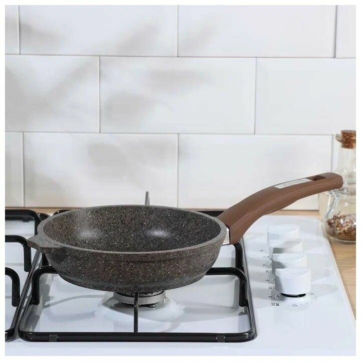 Сковорода мечта 24см с фиксированной ручкой, антипригарное покрытие, стеклянная крышка, Гранит, Premium mokko