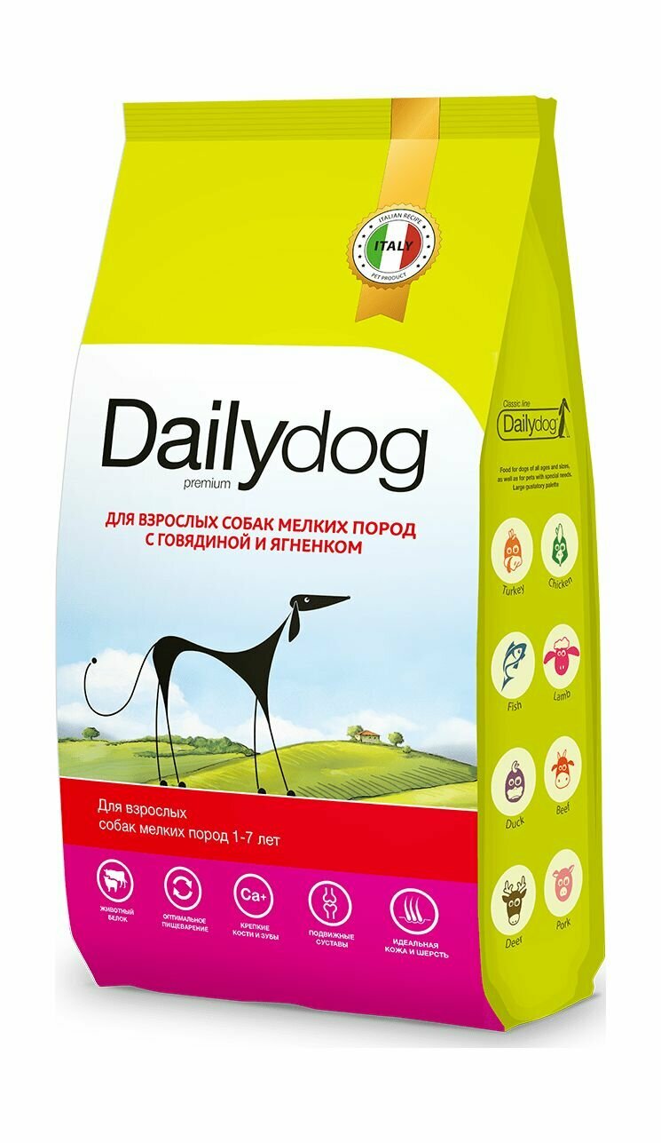 Сухой корм Dailydog для собак мелких пород, с говядиной и ягнёнком, 12 кг
