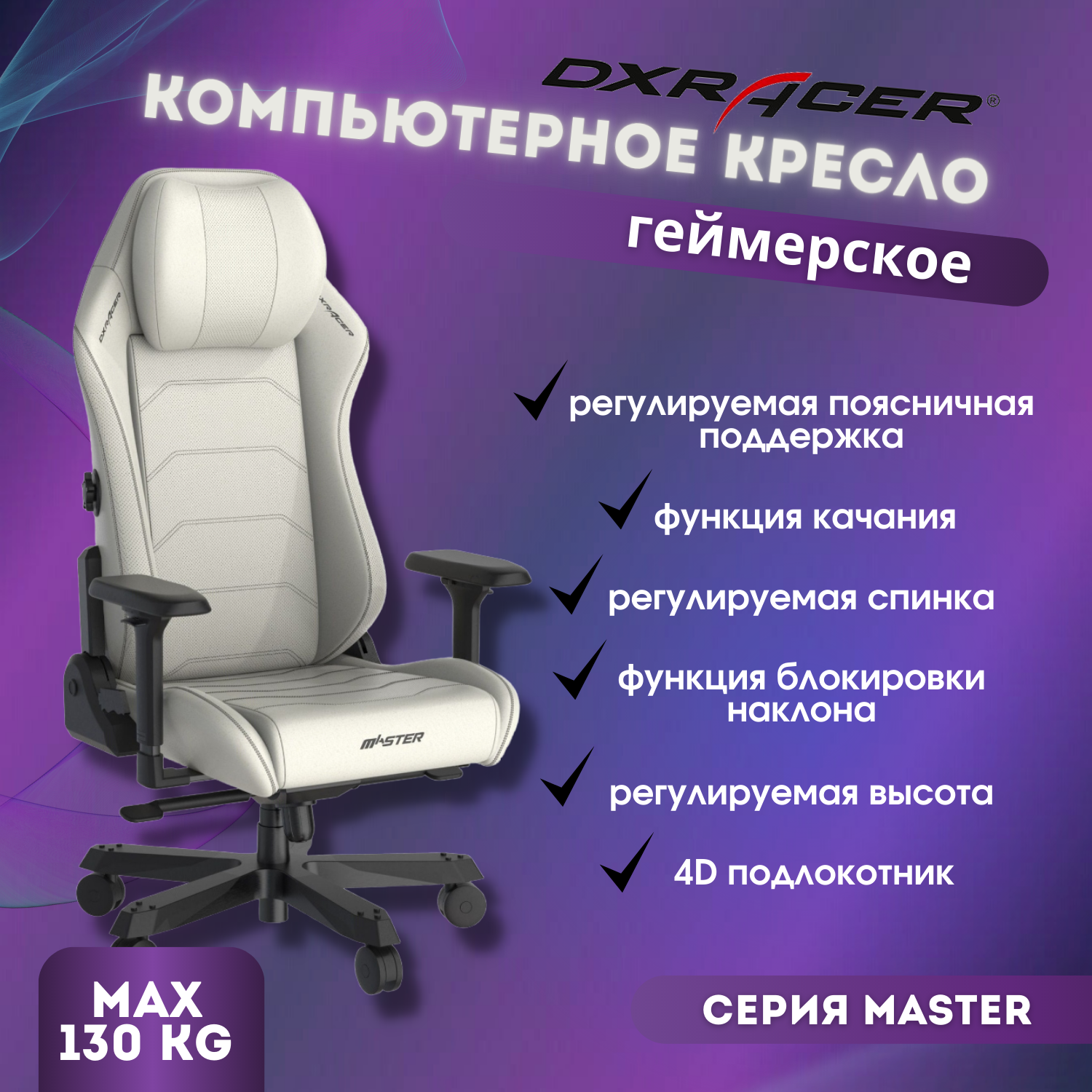 СохранитьКресло компьютерное игровое DXRacer MASTER (I-DMC/MAS2022/W) белое интересное: