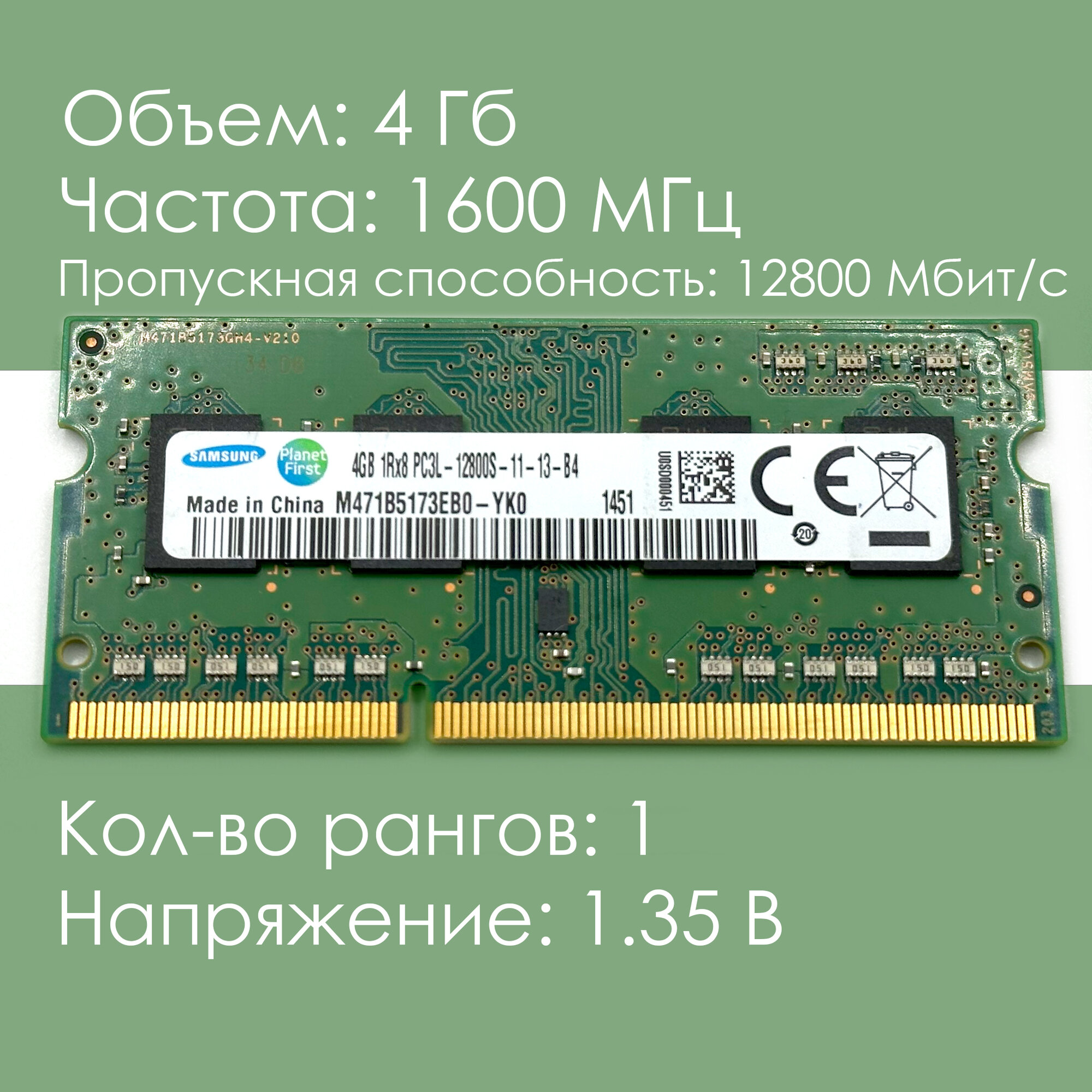 Оперативная память Samsung 4 ГБ DDR3L 1600 МГц SODIMM CL11 M471B5173EB0-YK0