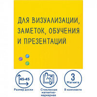 Доска магнитно-маркерная стеклянная Brauberg желтая, 45х45 см, 3 магнита