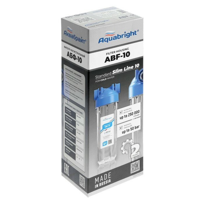 Фильтр магистральный аквабрайт АБФ-2-3/4 Slim Line для холодной воды Прозрачный