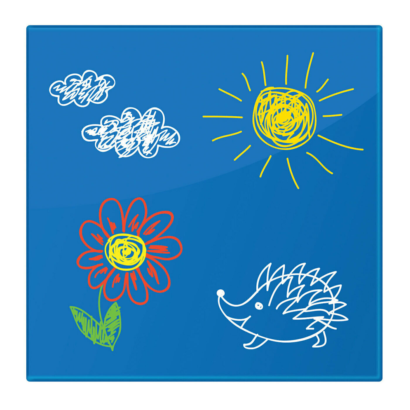| Плюсы: | Очень красиво смотрится, интереснее, чем привычные металлические доски. Маркер не впитывается в стеклянную поверхность, можно надолго оставлять записи. Ребенок использует вместо черновика для промежуточных расчетов. |