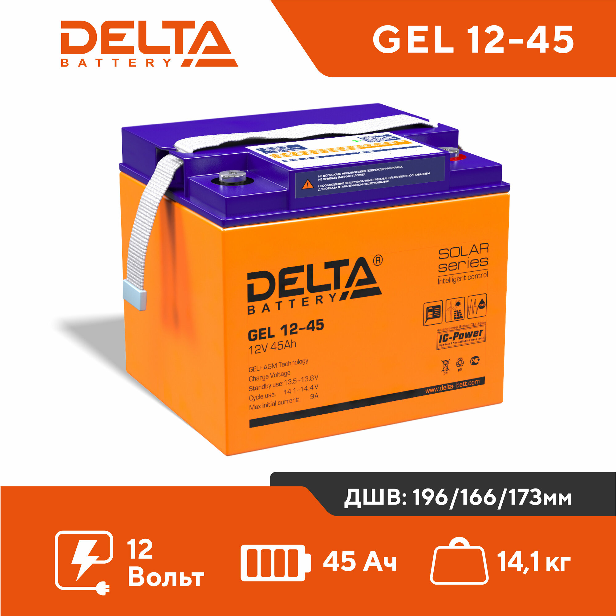 Аккумуляторная батарея Delta GEL 12-45 аккумулятор для ИБП, аккумулятор для UPS, аккумулятор для детского электромобиля, аккумулятор для кресла-каталки, аккумулятор для солнечной панели, аккумулятор для ветрогенератора