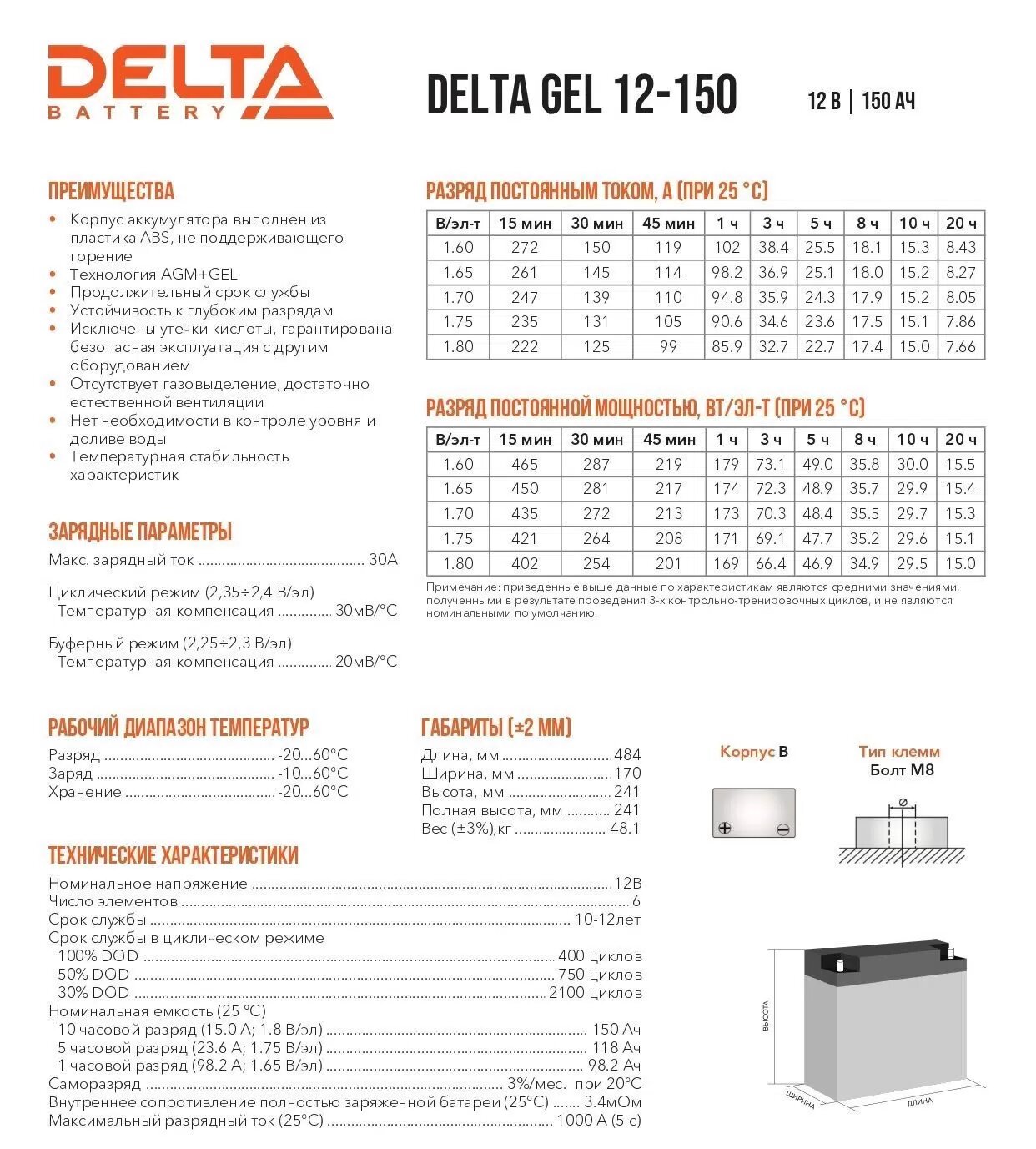 СохранитьАккумулятор Ибп 12В 150 А.ч. Delta (Gel 12-150) (484Х170х241) (Gel) *** DELTA battery арт. GEL12150 интересное: