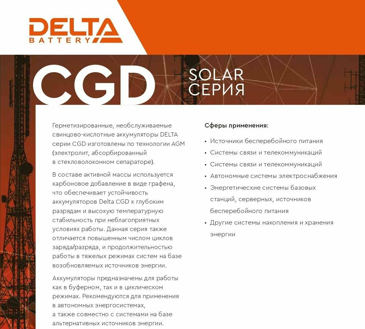 СохранитьАккумуляторная батарея DELTA BATTERY CGD 12100 интересное: