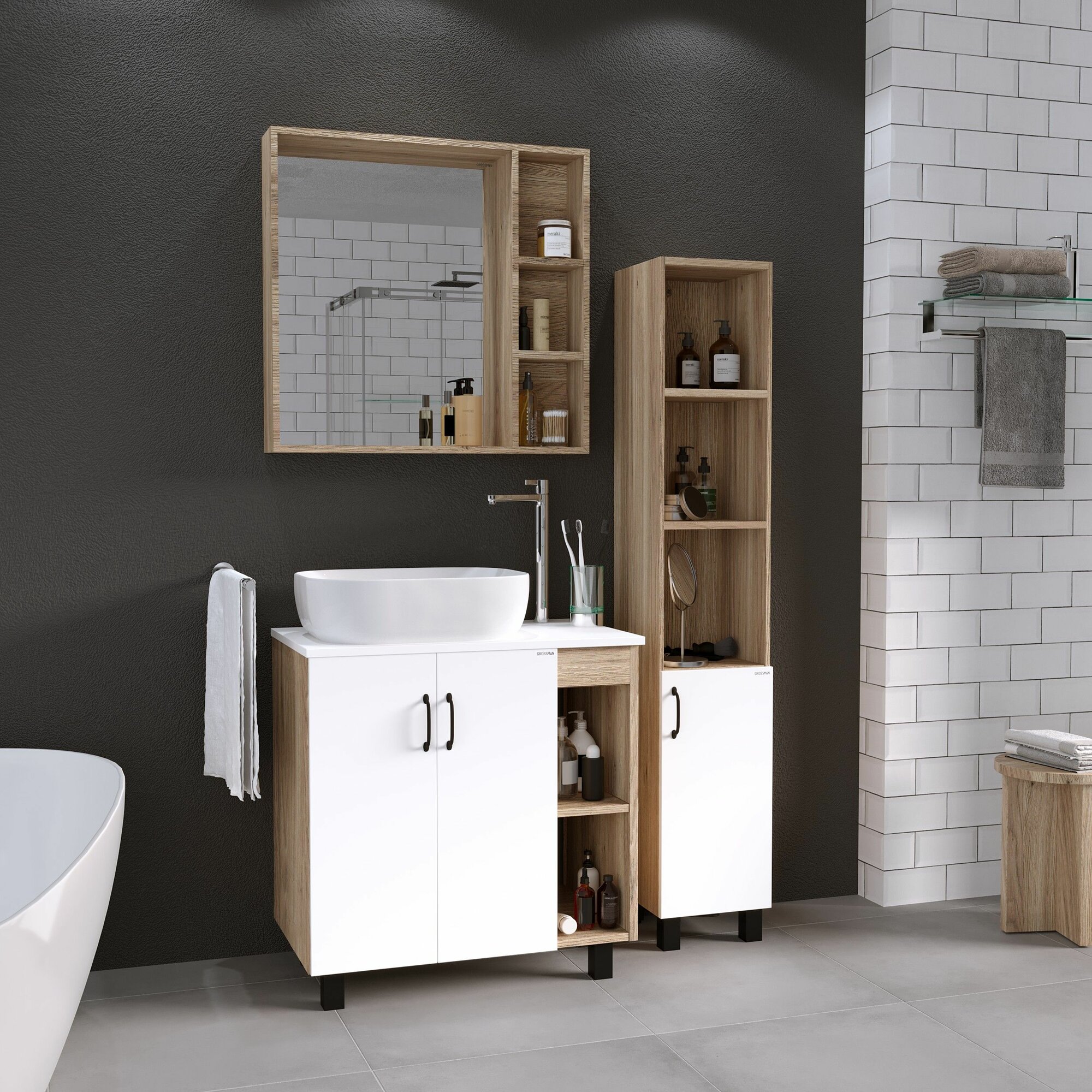 Тумба с раковиной Grossman Талис 80 подвесная бетон пайн/белая