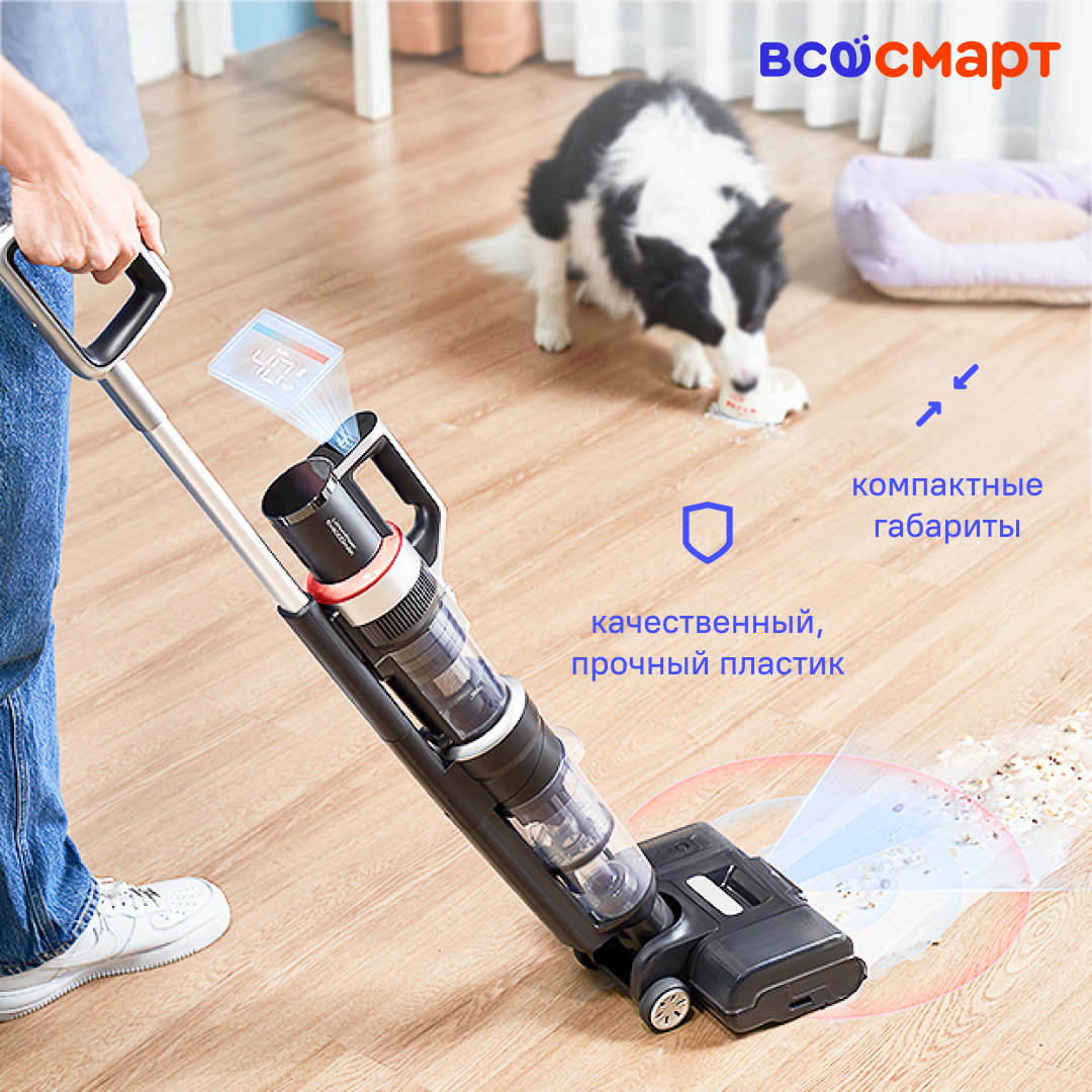 | Плюсы: | Настолько мощный что засасывает коврик в ванной,носок тоже пытался сожрать))) но защита срабатывает четко-как только что то постороннее крупное попало-отключается! Шум как и от любого другого, ведь мощно значит - не бесшумно ! Очень нравится количество насадок, на любой случай и любую поверхность или щель. Думал будет постоянно нужен Максимальный режим, но нет и в Турбо все убирается прекрасно! Цена конечно высокая, но если поймать акцию то нормуль! Еще и кэшбек вернулся! Заряда хватает на большее время по сравнению с другими, стойка помещает все насадки в одном месте и никаких коробок в шкафу. Из минусов действительно есть почему то небольшой люфт между трубой и пылесосом, но на мощность это не отражается. Странно что недоработали это! Заряжать аккумулятор можно как и в в пылесосе так и отдельно. Сгибаемое колено не сказать что прям нужная вещь, но приятный бонус к удобству, не сгибаясь проникнуть под диван и стулья ! Внешне просто красавец! Выносил на стоянку пылесосить в машине, некоторые прям завидовали) и в лифте и на улице))) ну и конечно самое главное что это действительно зверь по мощности, оставит ни у дел многих в том числе и проводные. Даже моющий домашний пылесос видимо уйдёт на пенсию! Лучше чаще этим пробежаться, чем разводить целую процессию с проводами, тягаемыми шлангами и очищением резервуаров после уборки.