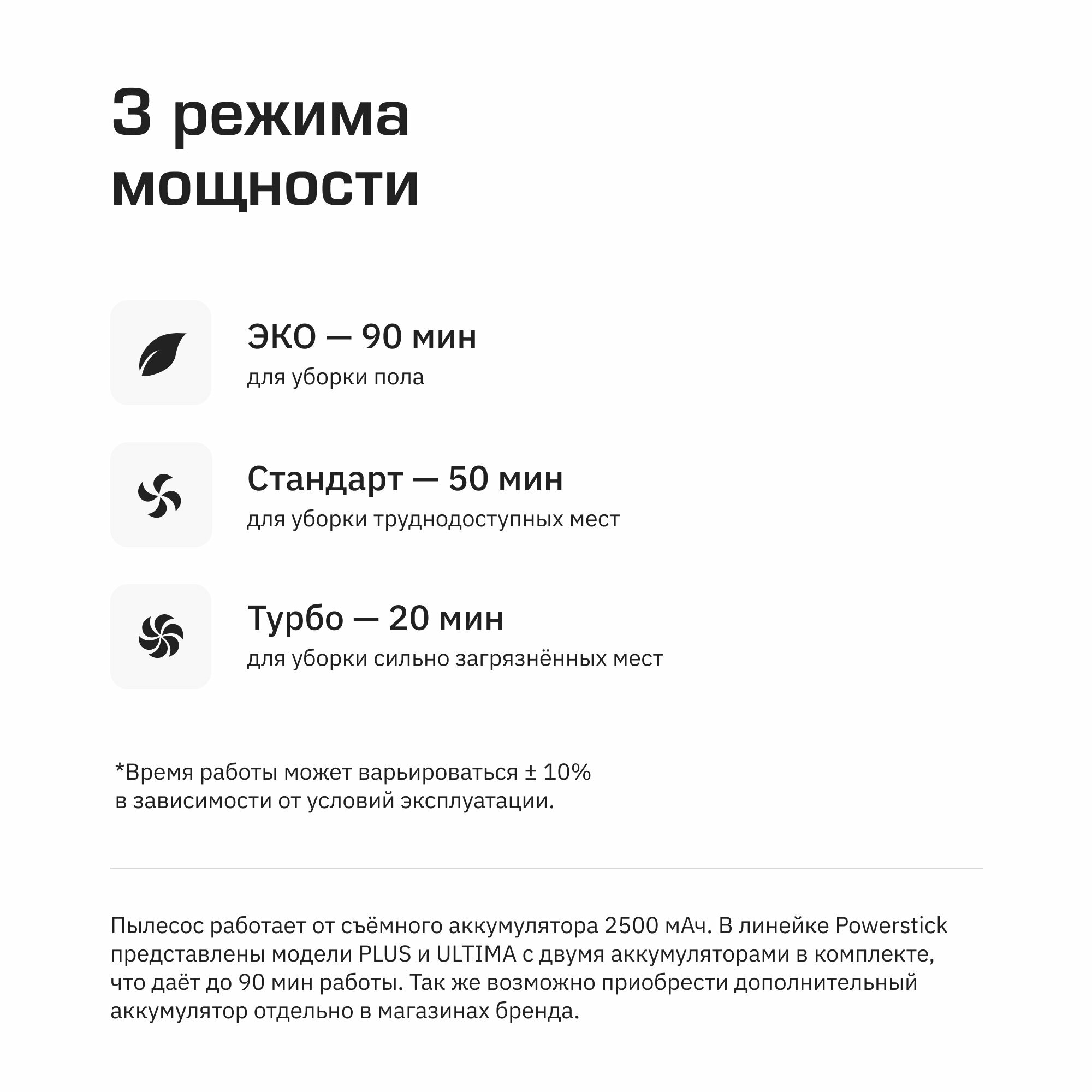 | Аккумуляторная система | Li-ion, 2500 мАч |