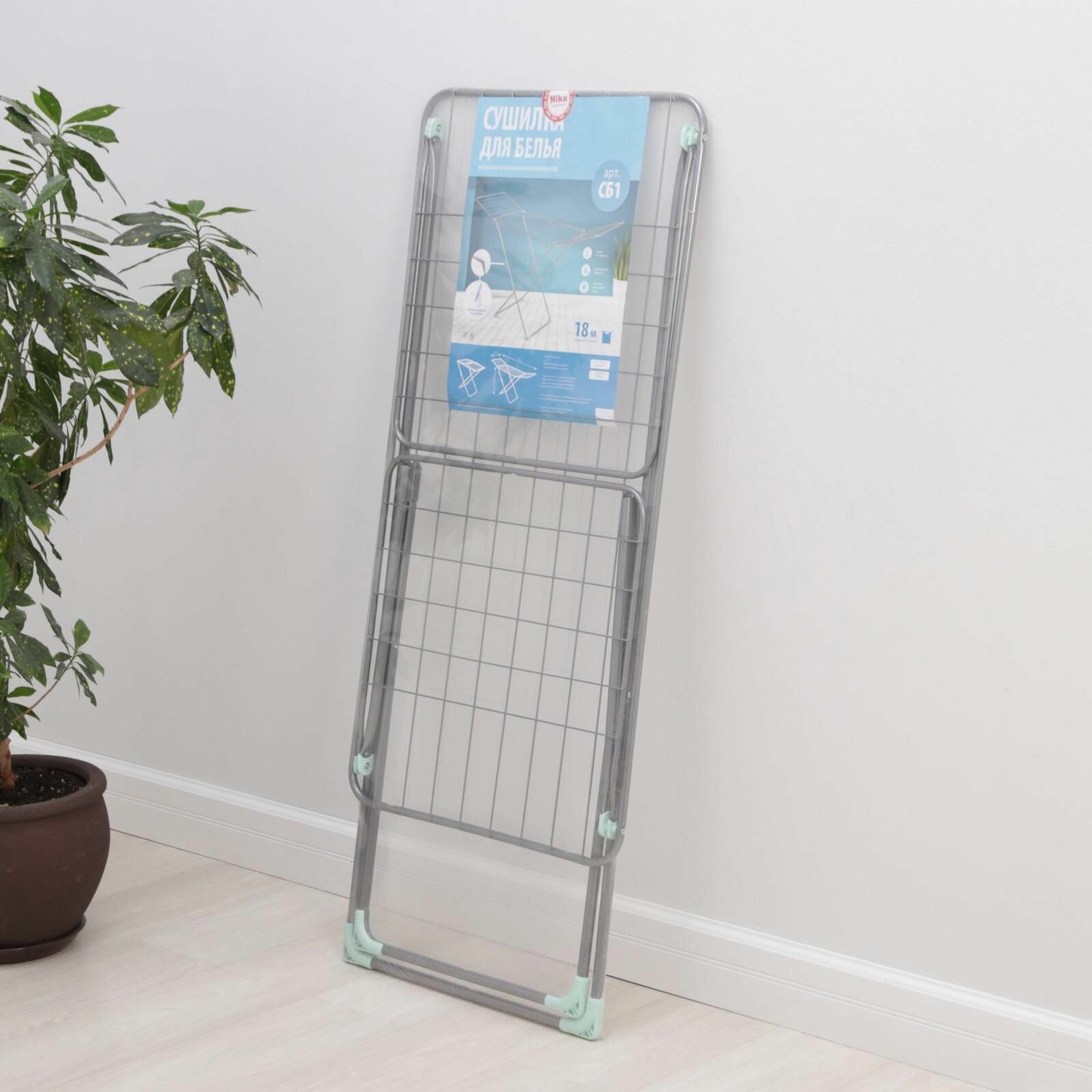 Сушилка для белья напольная складная 18 м, высота от пола 95 см, ширина 54 см, цвет серый